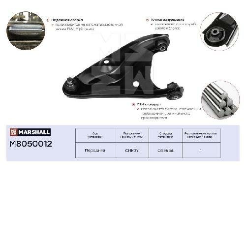 Рычаг Подвески Передн. Прав. Lada Largus 12-, Nissan Almera (G15) 12-, Renault Logan 04-, Sandero 07- () MARSHALL арт. M8050012 интересное: