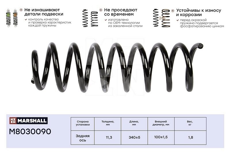Пружина подвески задняя MARSHALL M8030090 для Renault Logan 04- // кросс-номер KYB RG6454, // OEM 6001547493, 6001547971, 6001548731 интересное: