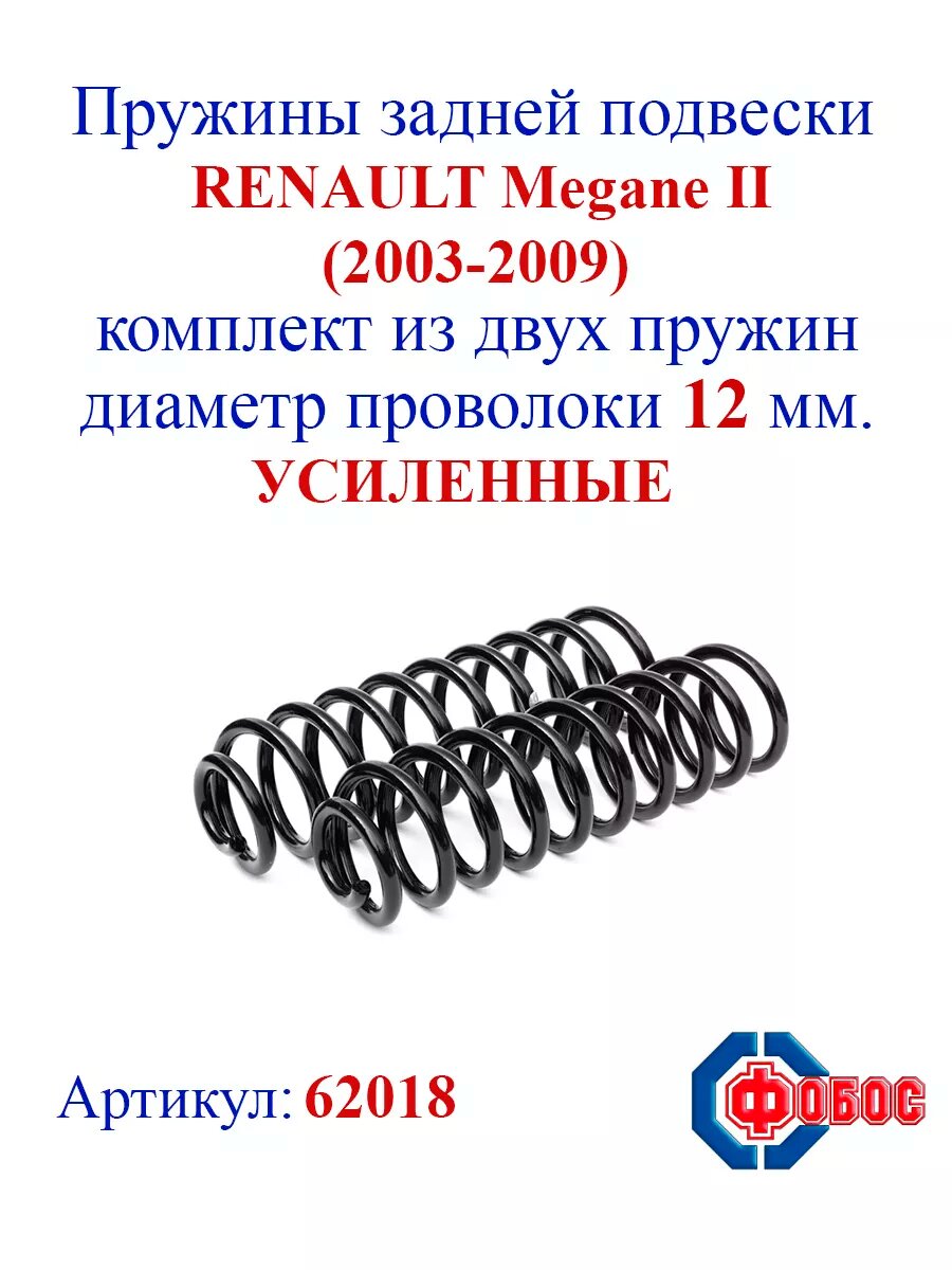 Пружины подвески Renault Megane задние усиленная с 2003 по 2009 г. 62018 комплект 2 шт
