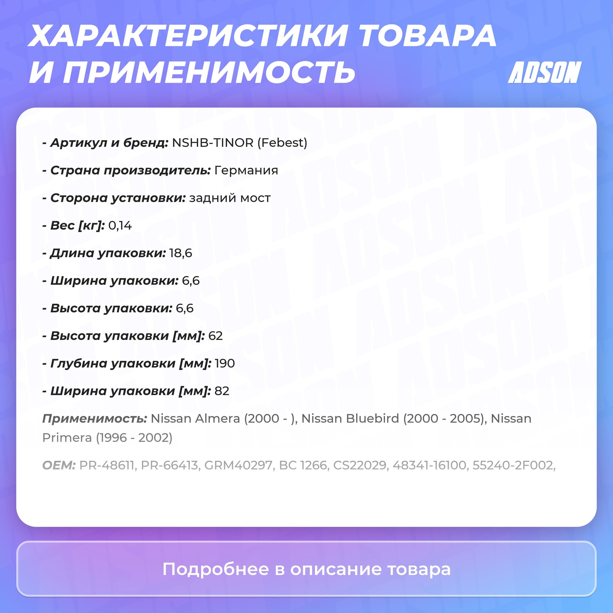 | Код производителя | NSHBTINOR, NSHB-TINOR |