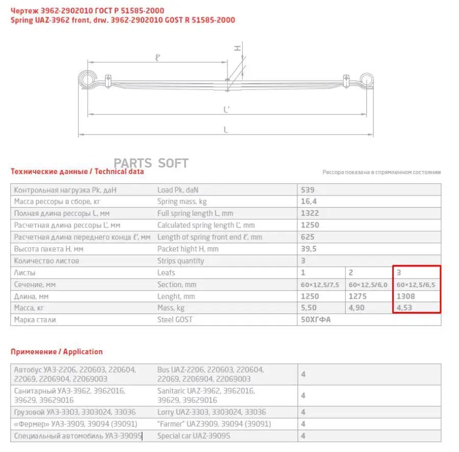 | Подробная комплектация | Лист задней рессоры - 1шт |
