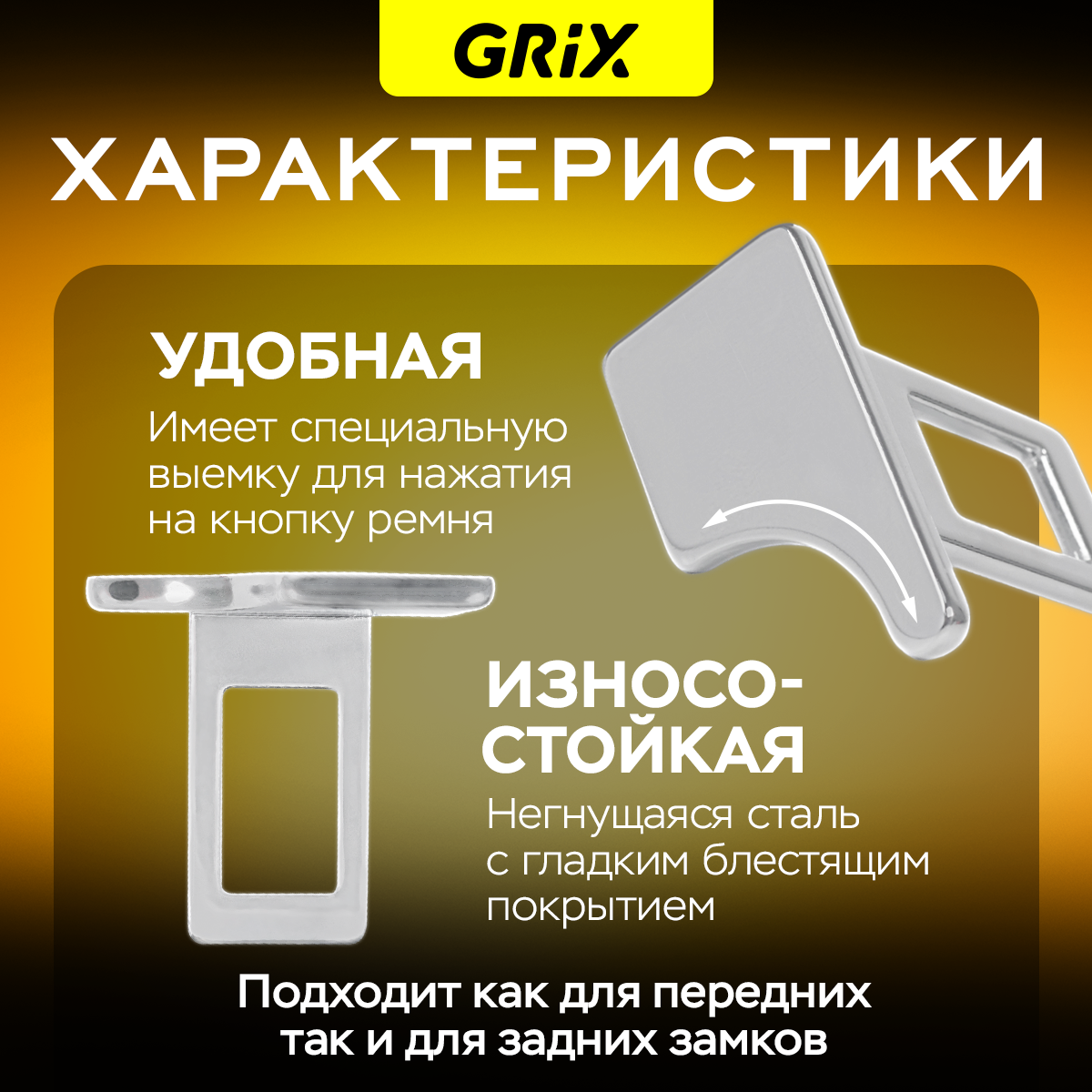 Grix Заглушка ремня безопасности для авто металлическая серебро 2 шт.
