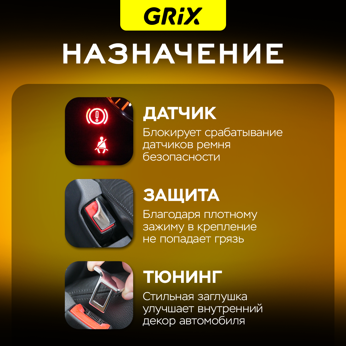 Grix Заглушка ремня безопасности для авто металлическая черная 2 шт.