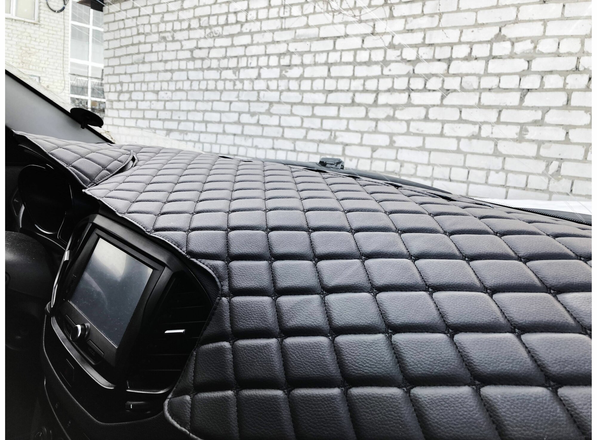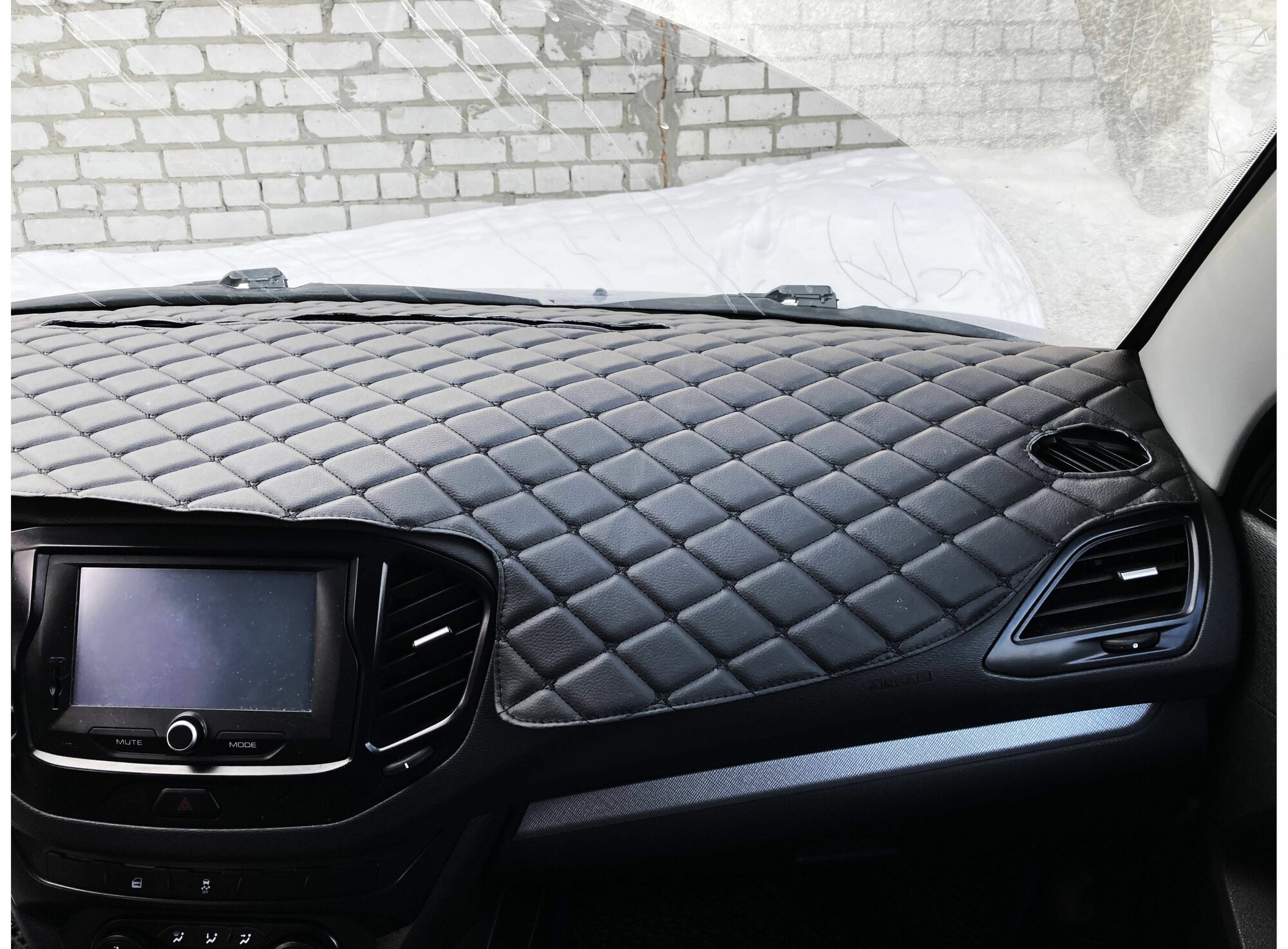 Накидка на панель LADA Vesta лада Веста 2015-2021 черный ромб черная строчка интересное: