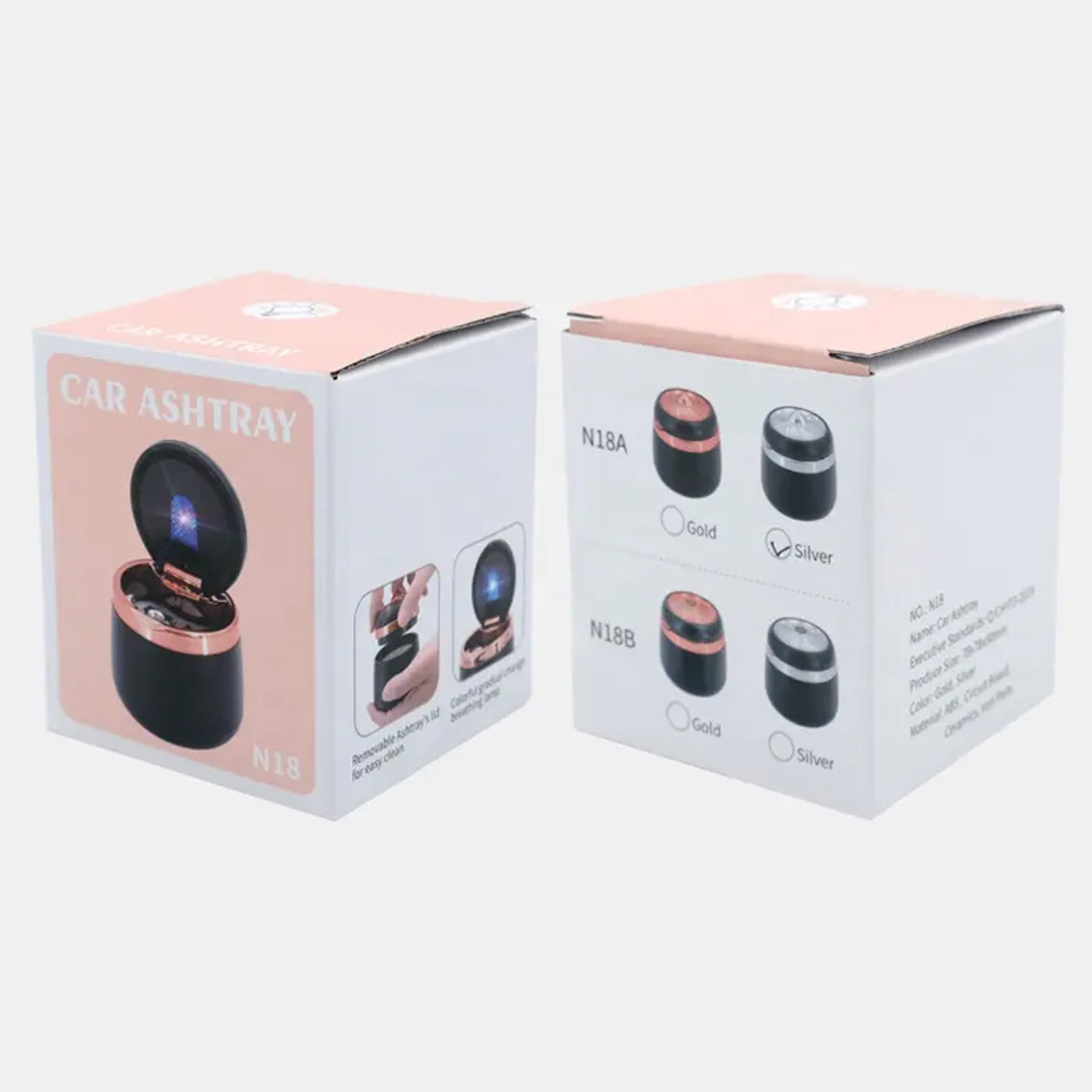 Урна в подстаканник N18B SILVER, CAR ASHTRAY мусорка автомобильная с подсветкой интересное: