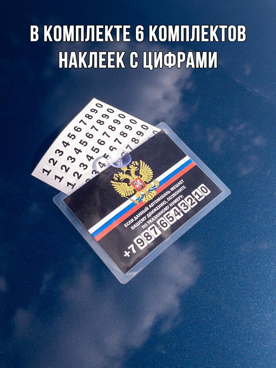 Автовизитка с номером телефона - парковочная табличка для авто с гербом РФ
