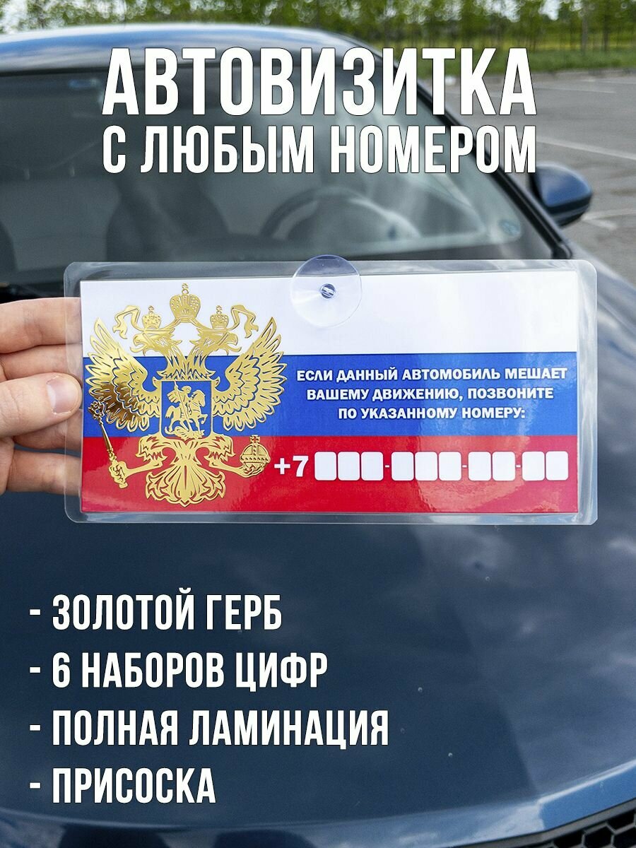 Автовизитка с номером телефона - парковочная табличка для авто с гербом РФ