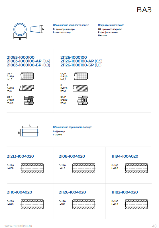 | Дополнительная информация | Кольцо стопор.: 8 шт П/палец: 4 шт Поршень: 4 шт |