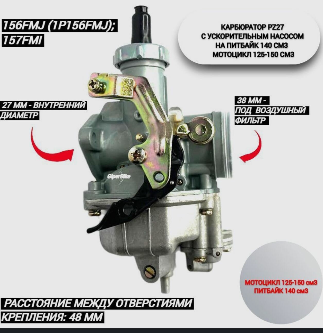 Карбюратор PZ27 CB/CG 150 с ускорителем интересное: