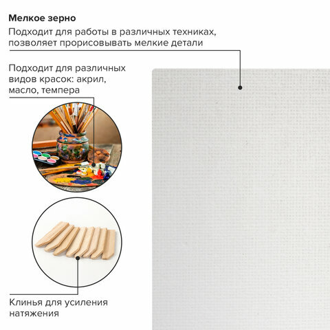 Холст на подрамнике BRAUBERG ART DEBUT, 30х40 см, грунтованный, 100% хлопок, мелкое зерно, 191023