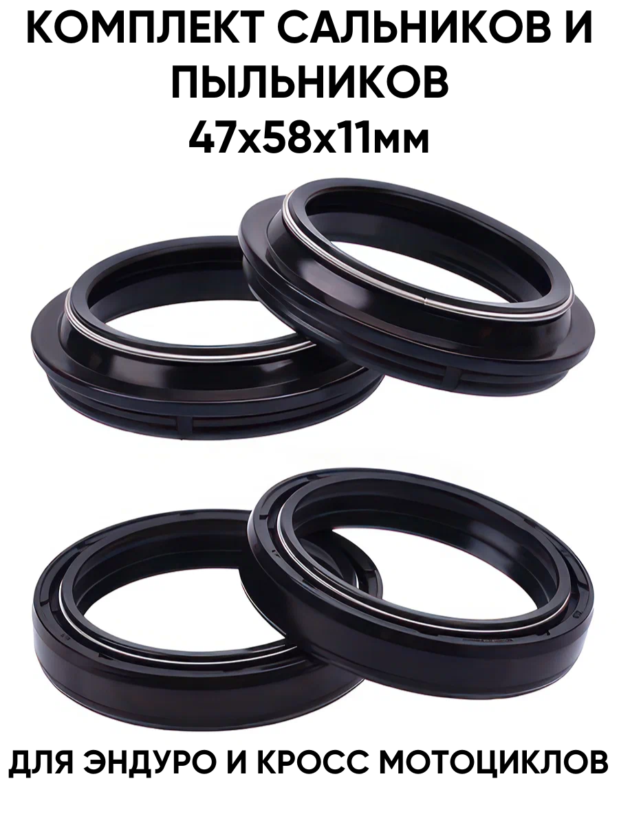 Купить Комплект сальников и пыльников 47x58x11/47*58*11мм передних амортизаторов, перьев, вилки для эндуро и кросс мотоциклов Honda, Suzuki, Triumph