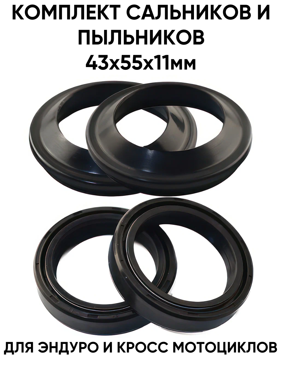Купить Комплект сальников и пыльников 43x55x11/43*55*11мм передних амортизаторов, вилки, перьев для эндуро и кросс мотоциклов Suzuki, Yamaha, Honda, Kawasaki