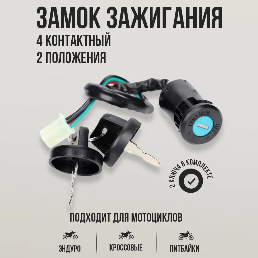 Замок зажигания 4 контактный с ключом крышкой для эндуро и кроссовых мотоциклов, 2 положения интересное: