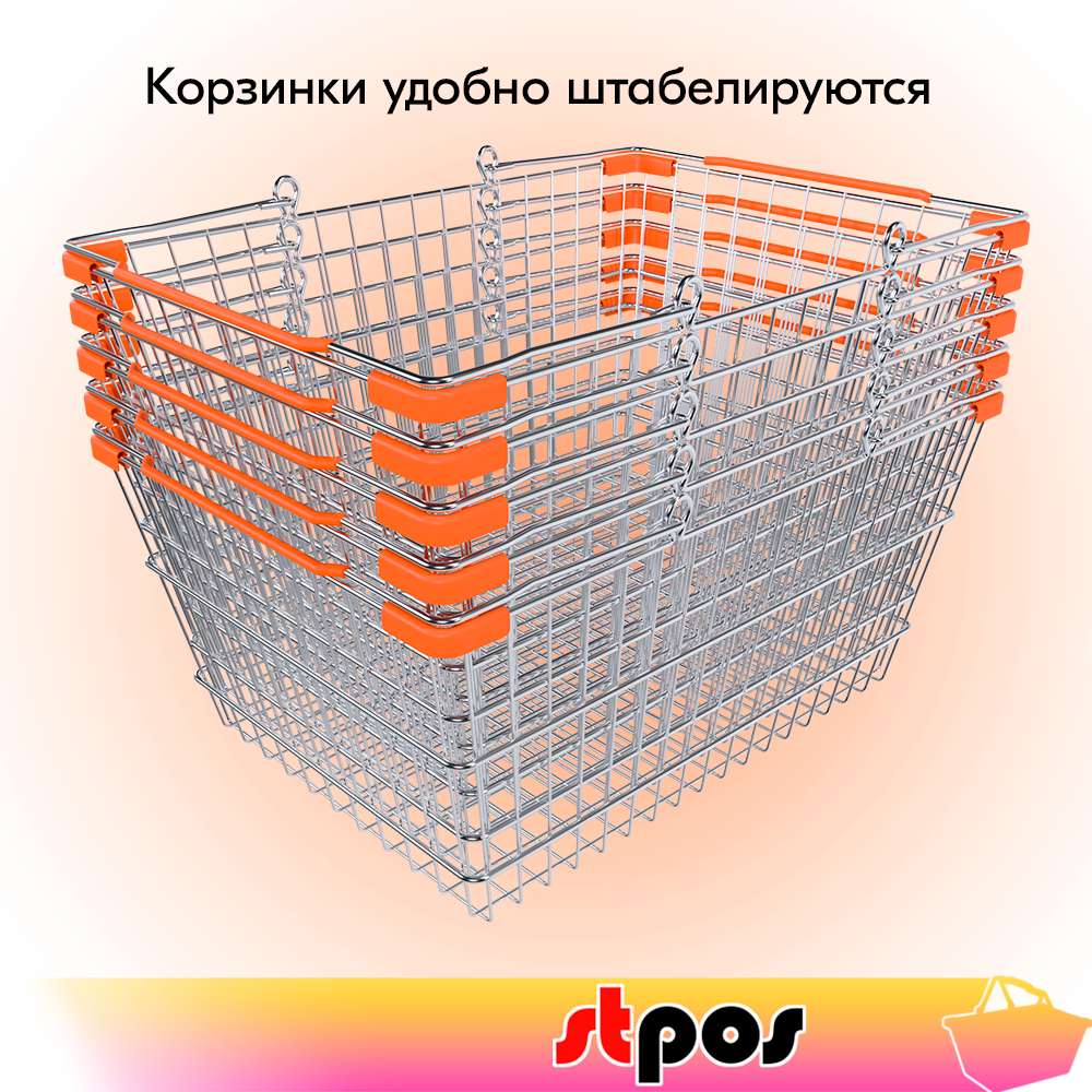 Корзина покупательская металлическая 22л, хром, Оранжевые ручки и уголки, 22CR-OR интересное: