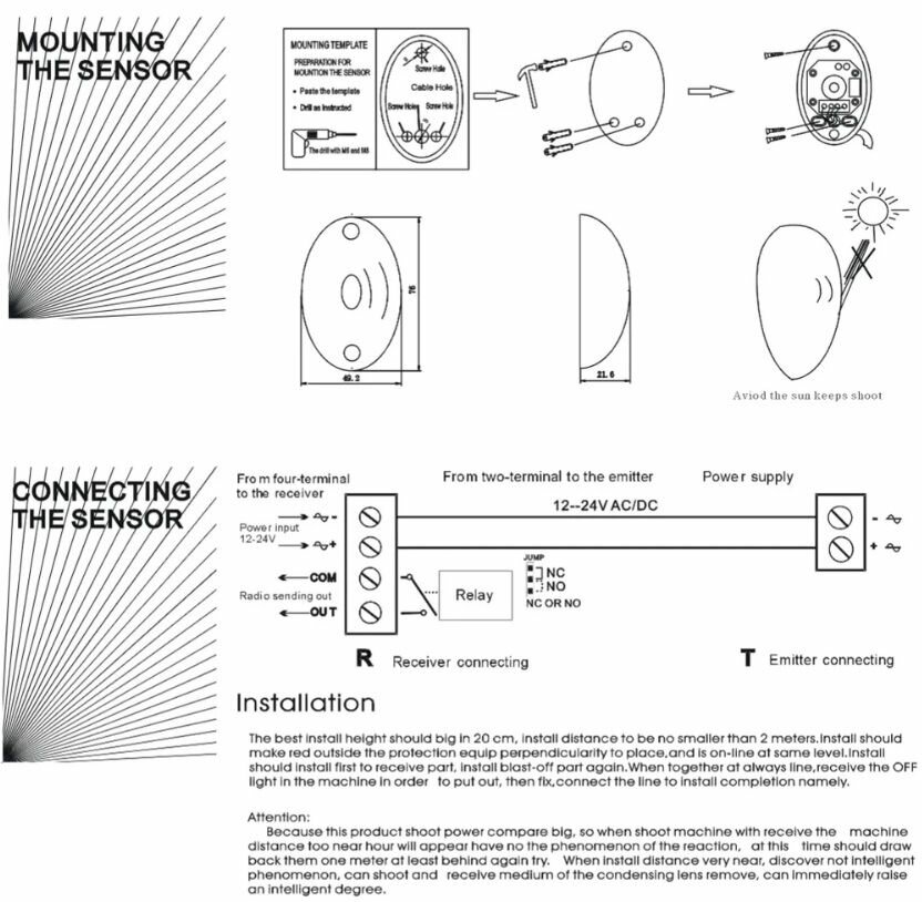 | Подробная комплектация | Передатчик с однолучевым инфракрасным датчиком х 1; Приемник с однолучевым инфракрасным датчиком х 1; Пакет с принадлежностями для установки х 1; Руководство по эксплуатации на английском языке х 1. |