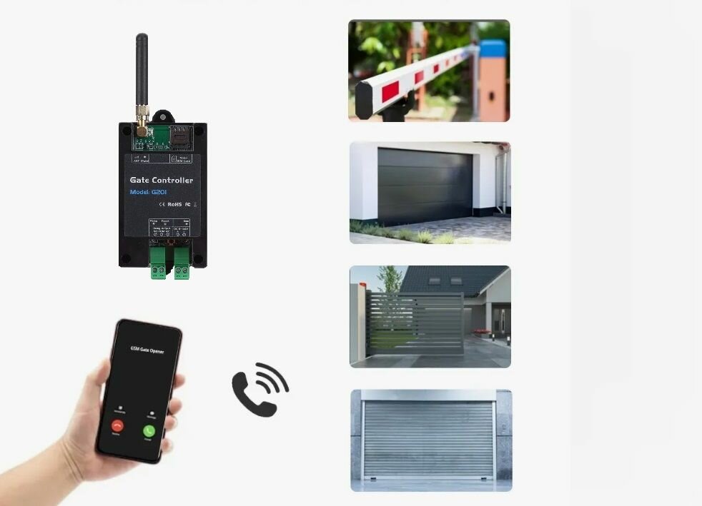 GSM модуль G201 для ворот и шлагбаумов, Gsm реле на 999 абонентов + блок управления через провода 12в 1а
