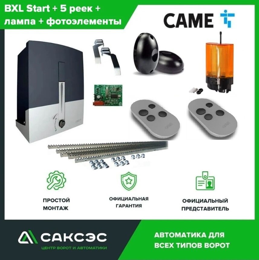 Комплект автоматики для откатных ворот CAME BXL Start + 5 зубчатых реек + фотоэлементы + лампа сигнальная интересное: