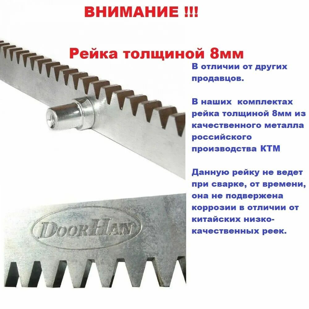 | Подробная комплектация | Пульт 2-канальный Transmitter 2Pro - 2шт.,6 реек 8мм , фотоэлементы Doorhan - 1 пра |