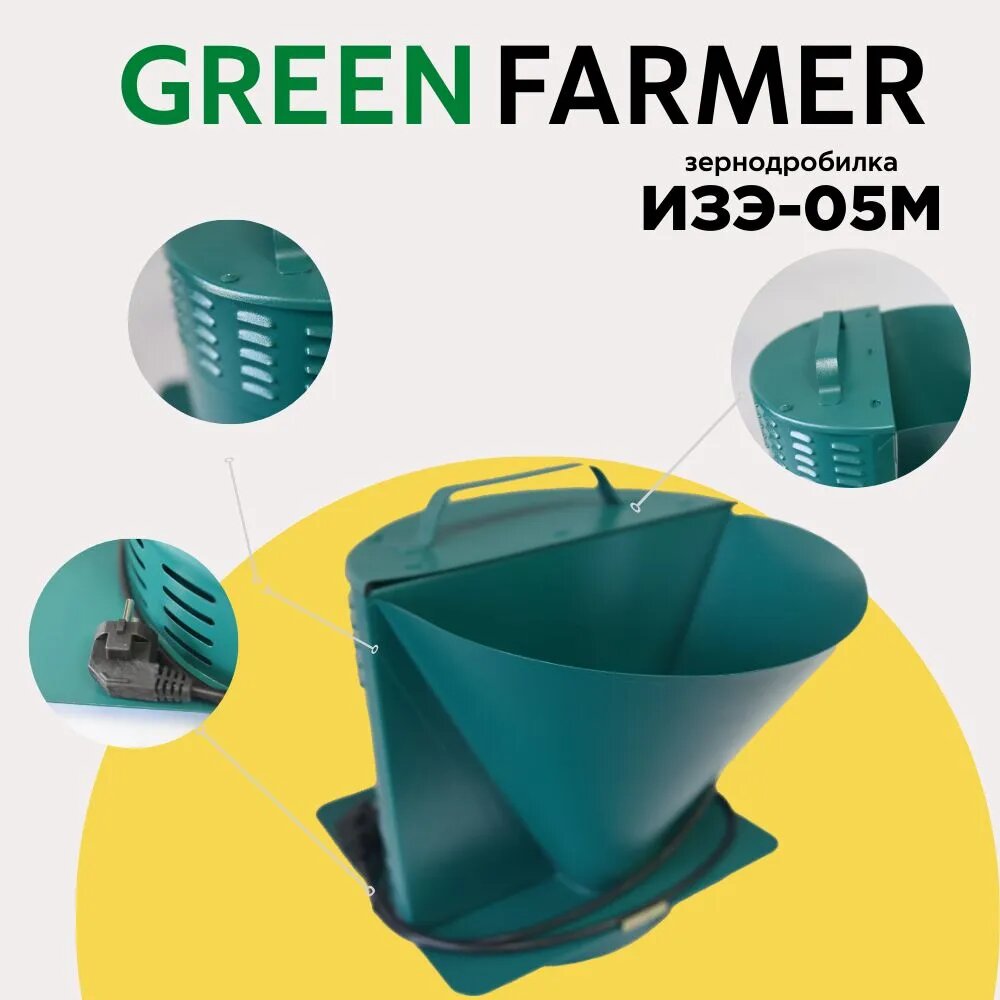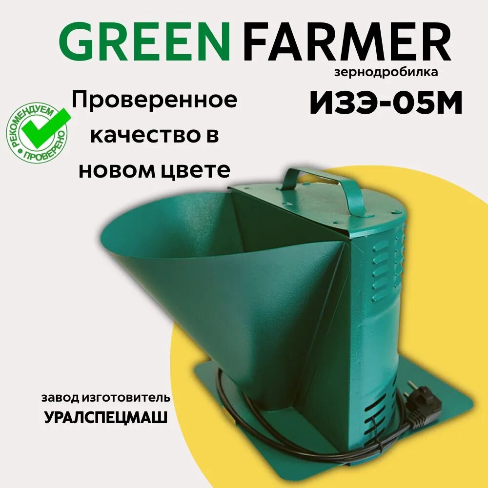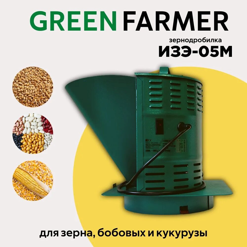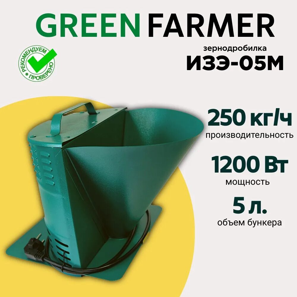 Зернодробилка GREEN FARMER 250 кг/ч, ИЗЭ-05М, мощность 1200 Вт, объем бункера 5 литров (аналог зернодробилки ИЗЭ-05М Фермер) интересное: