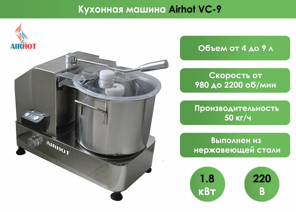Ниже Вы можете прочитать отзывы на Куттер Airhot VC-9, ознакомится с подробными характеристиками, посмотреть интересные обзоры и фотографии на Куттер Airhot VC-9.