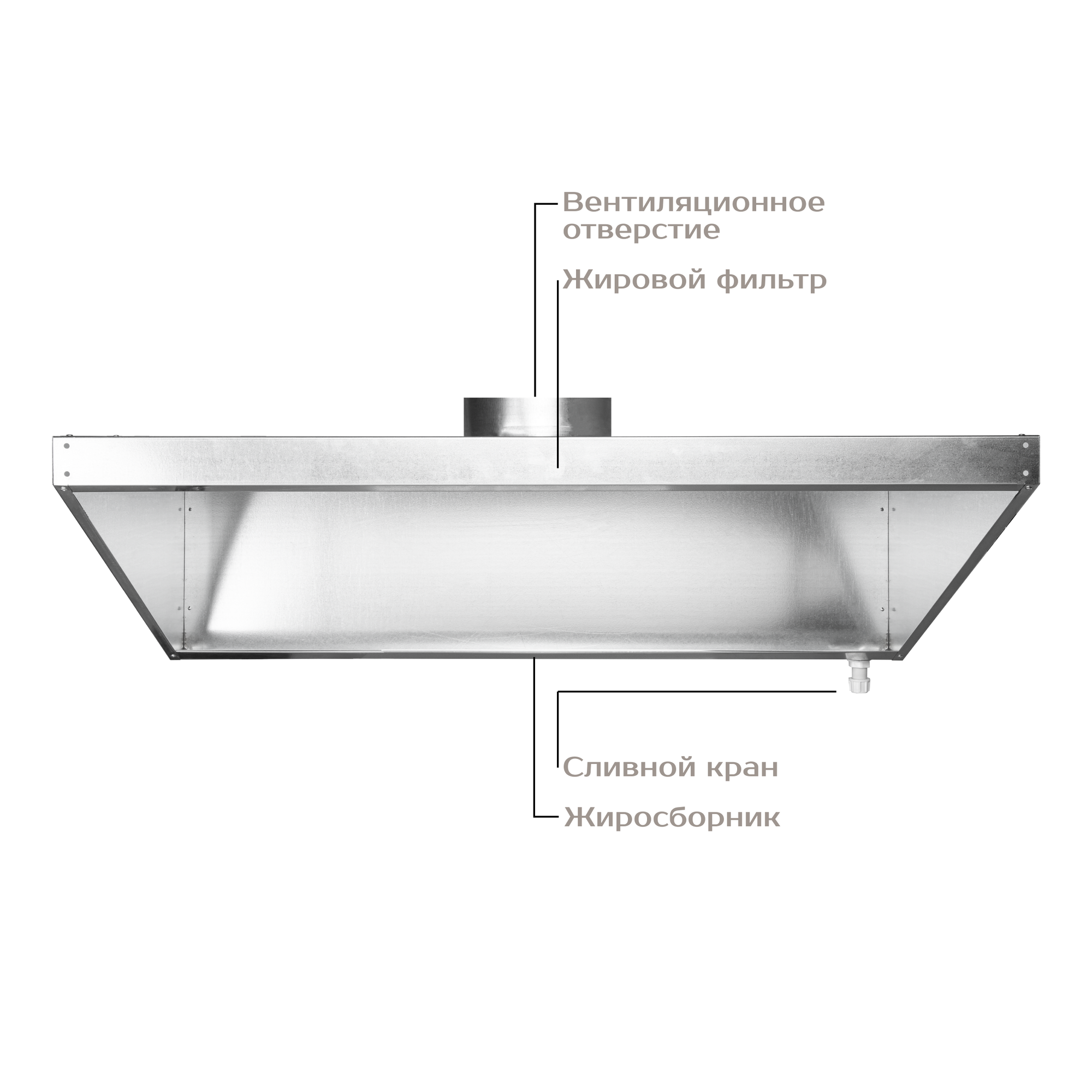 Зонт Вытяжной, Пристенный, Оцинкованная сталь, Без мотора. интересное: