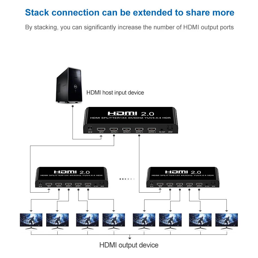 Купить Сплиттер PALMEXX SPT-14V20 1HDMI*4HDMI, HDMI2.0, 4k@60Hz YUV 4:4:4 HDR, Audio Extractor