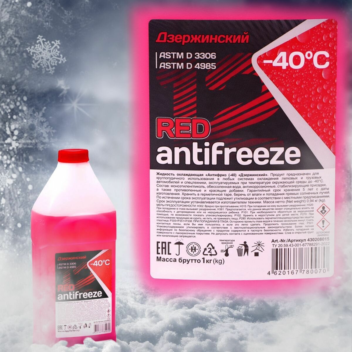Жидкость охлаждающая антифриз "Дзержинский ГОСТ" G12 (красный) 1 кг (бутылка ПЭТ) интересное: