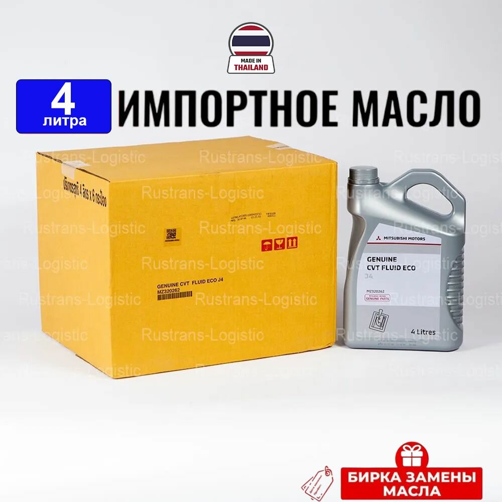 Масло трансмиссионное Mitsubishi CVT Fluid ECO J4 (таиланд), (4л) + бирка, жидкость АКПП синтетика для коробки передач Мицубиси MZ320262, РТЛ интересное: