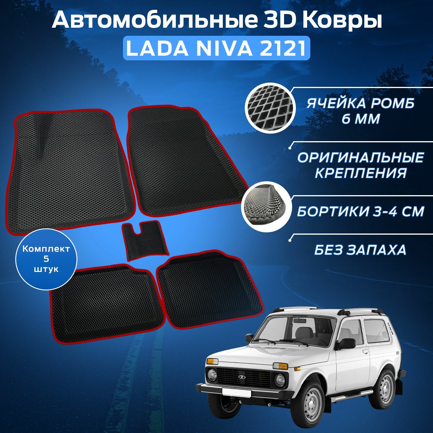 Купить Пресс-EVA 3Д Ковры Нива 2121 (Ева, эва, коврики с бортами) Niva 2121 / Красные