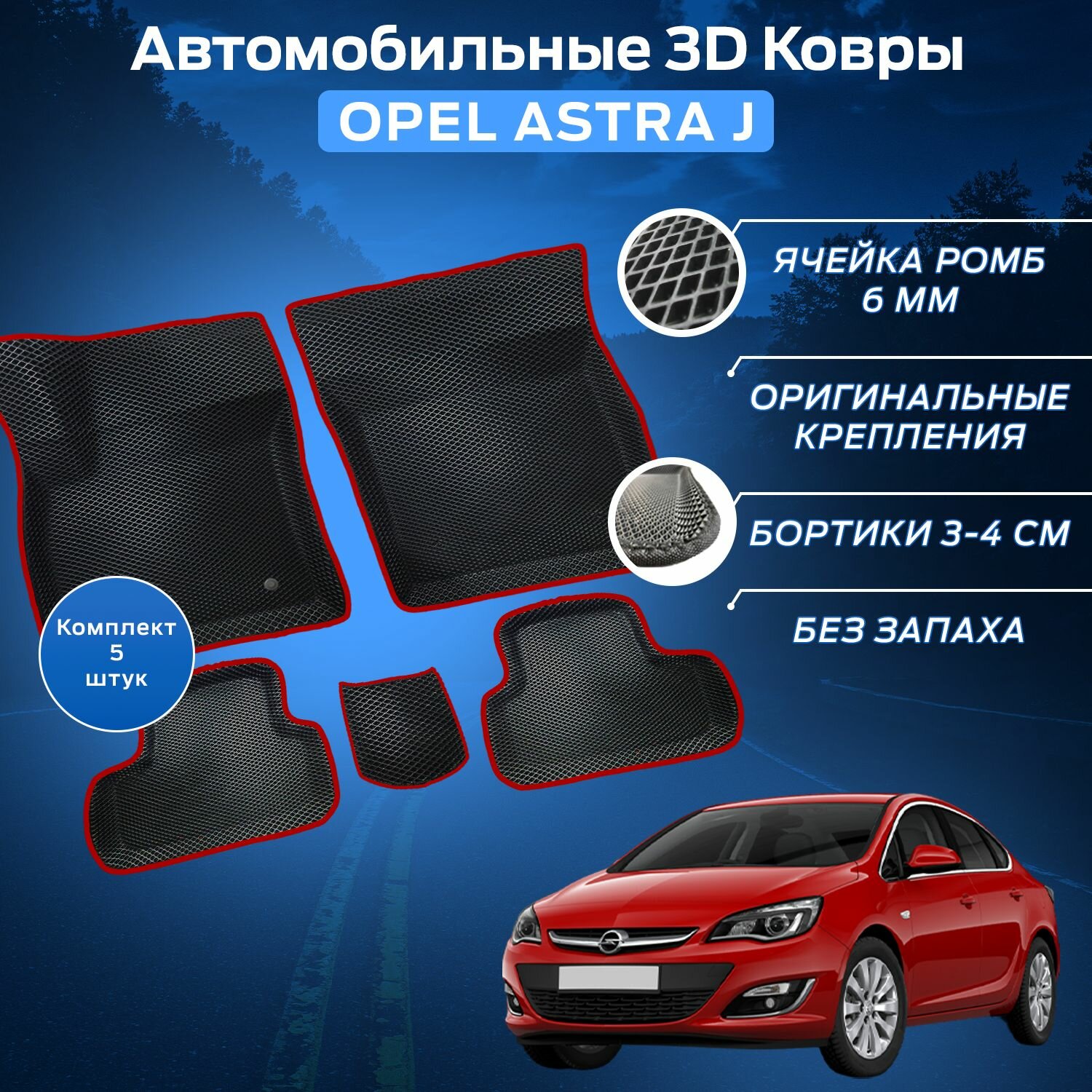Купить Пресс-EVA 3Д Ковры Опель Астра Джей (Ева, эва, коврики с бортами) Opel Astra J / Красные