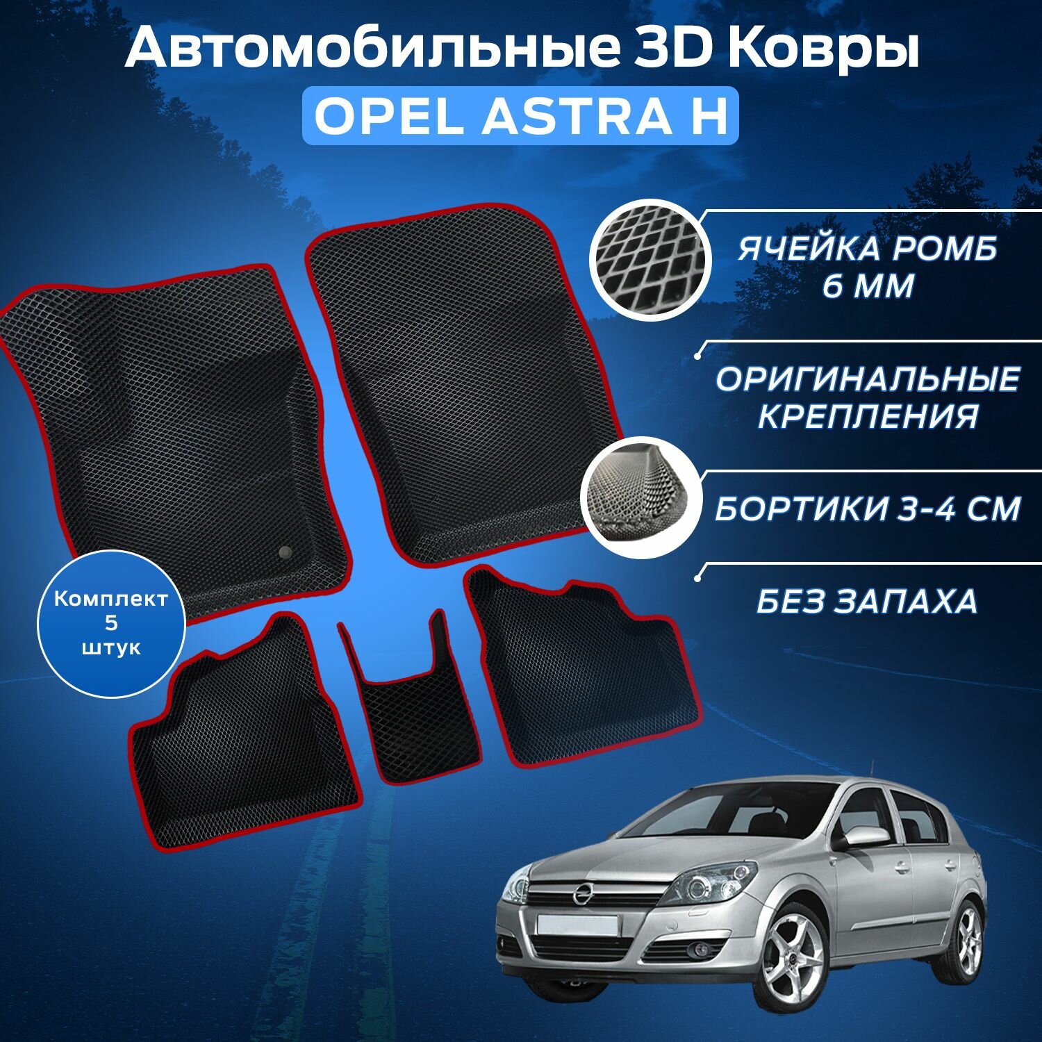 СохранитьПресс-EVA 3Д Ковры Опель Астра Н (Ева, эва, коврики с бортами) Opel Astra H / Красные интересное: