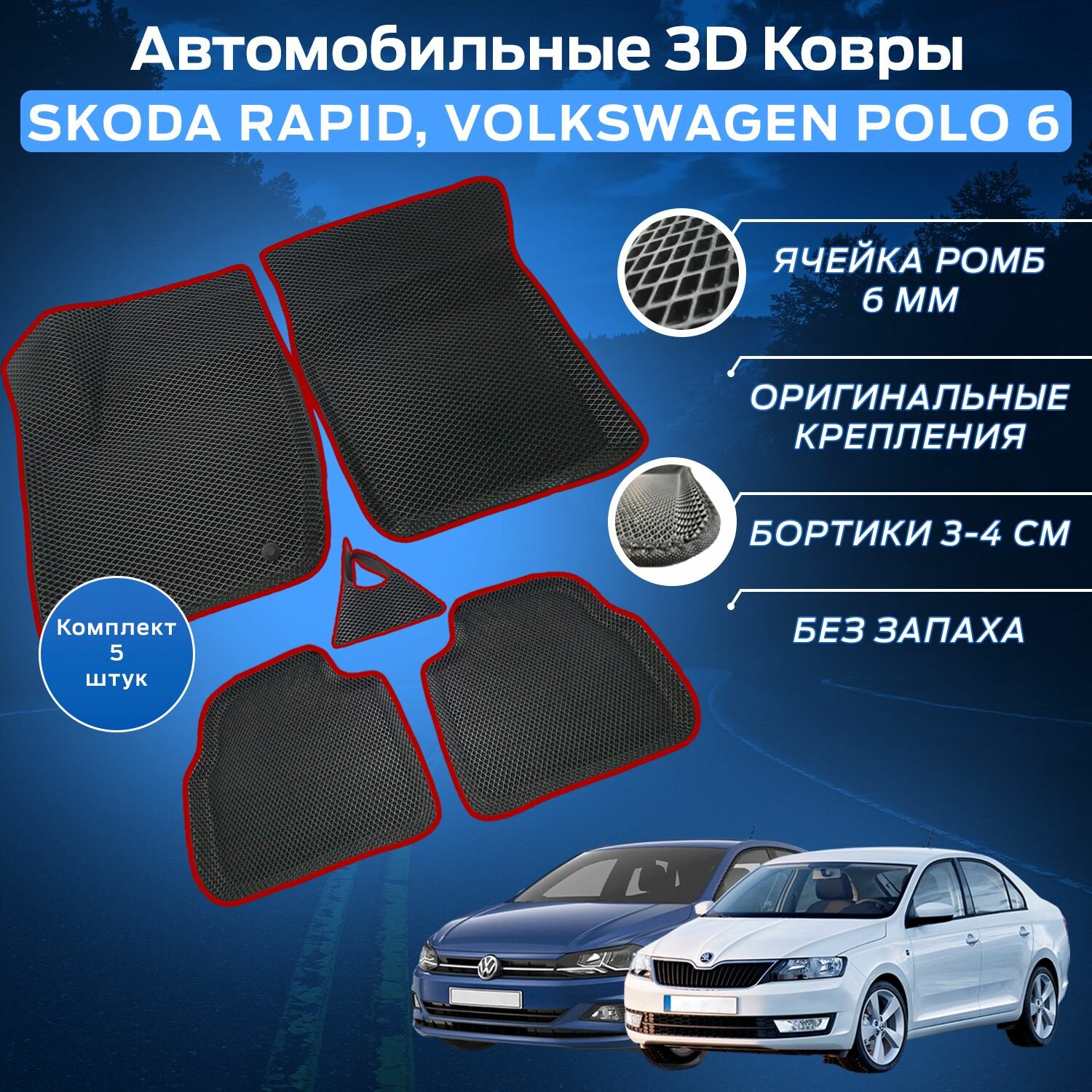 СохранитьПресс-EVA 3Д Ковры (Ева, эва, коврики с бортами) Шкода Рапид 1,2 / Фольксваген Поло 6 (VI) / Красные интересное: