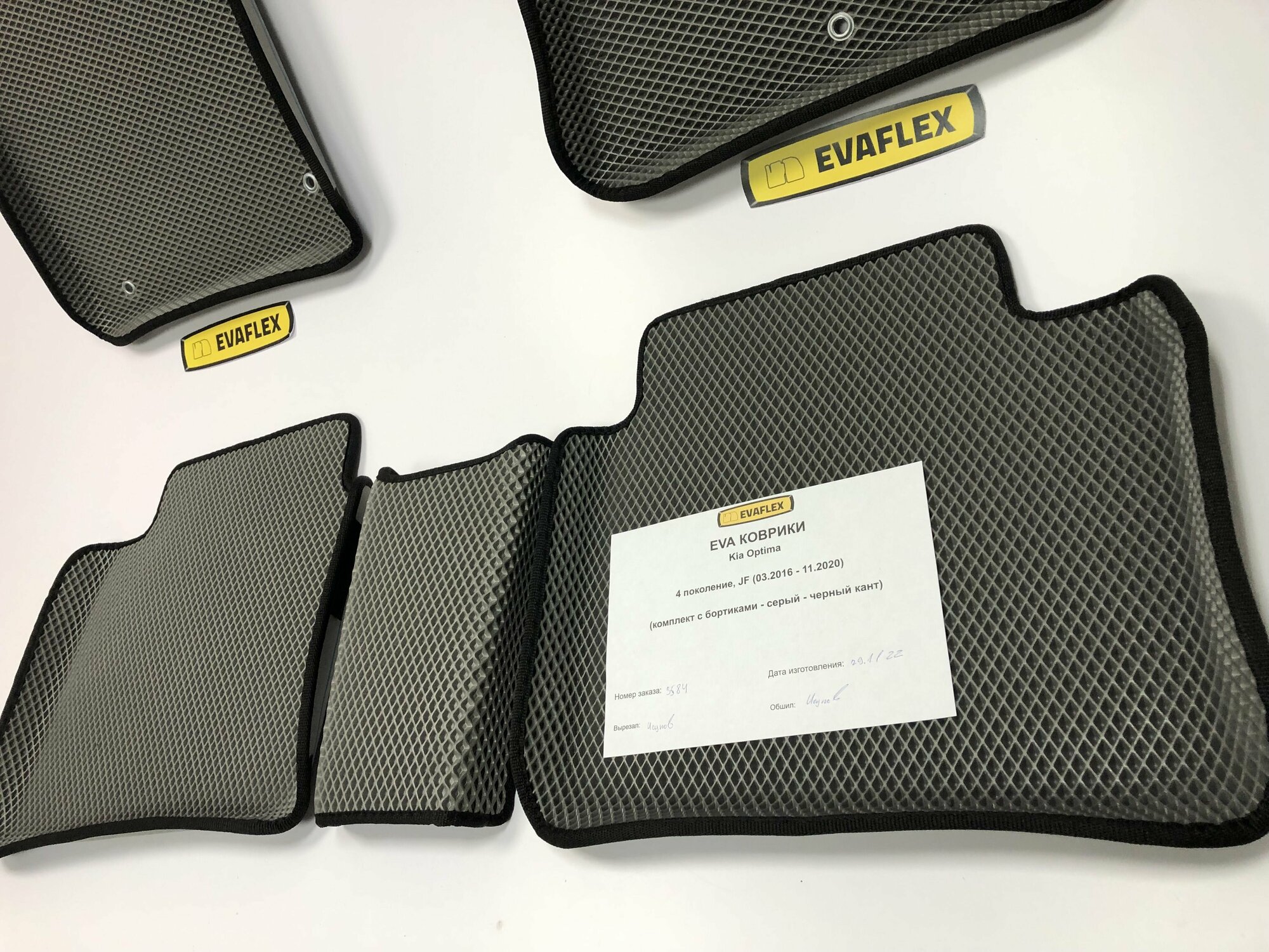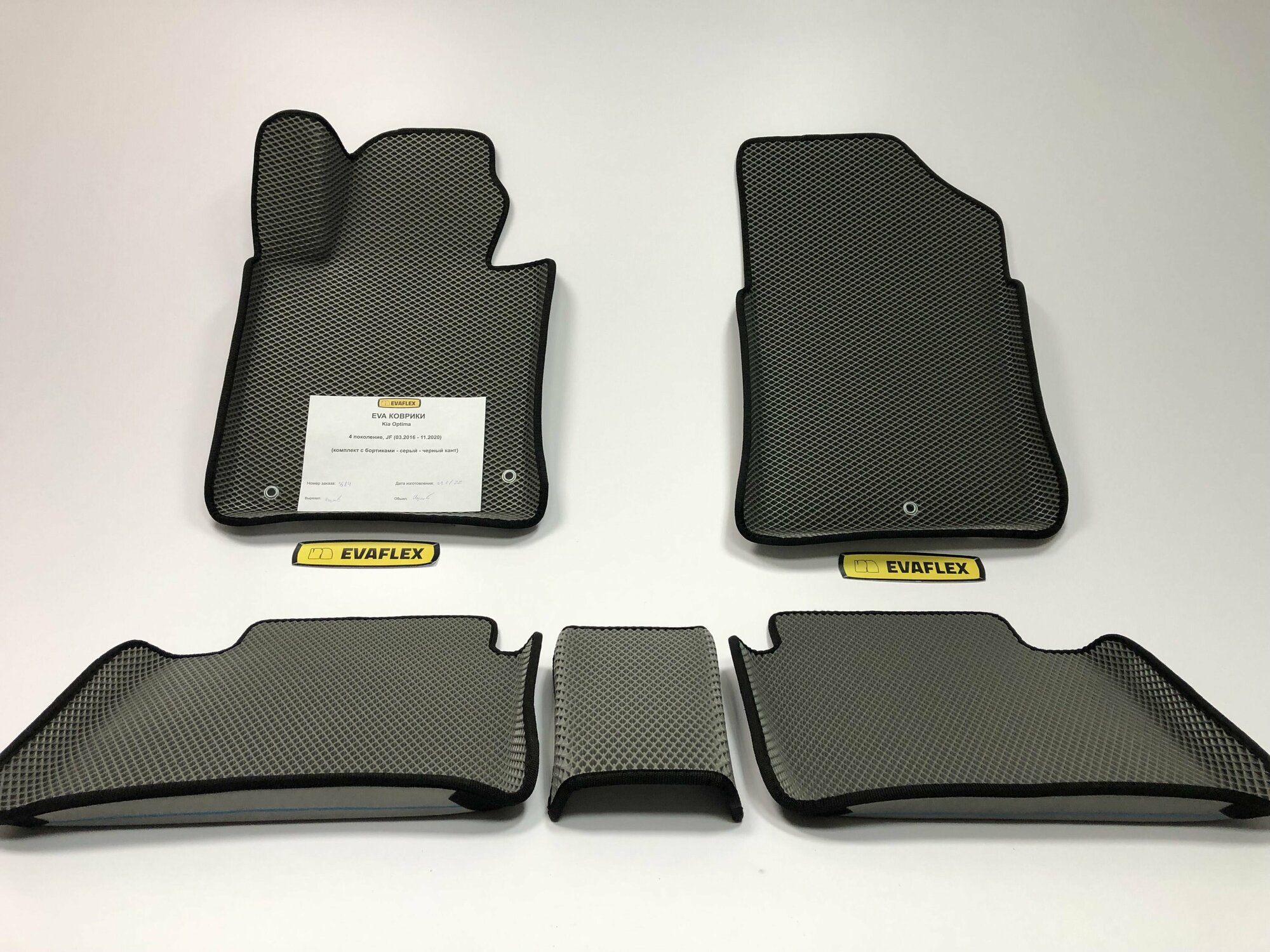 Коврики EVA для Kia Optima 4 поколение, JF (03.2016 - 11.2020) - Комплект в салон - 3D С бортиками - Серый - Черный кант интересное: