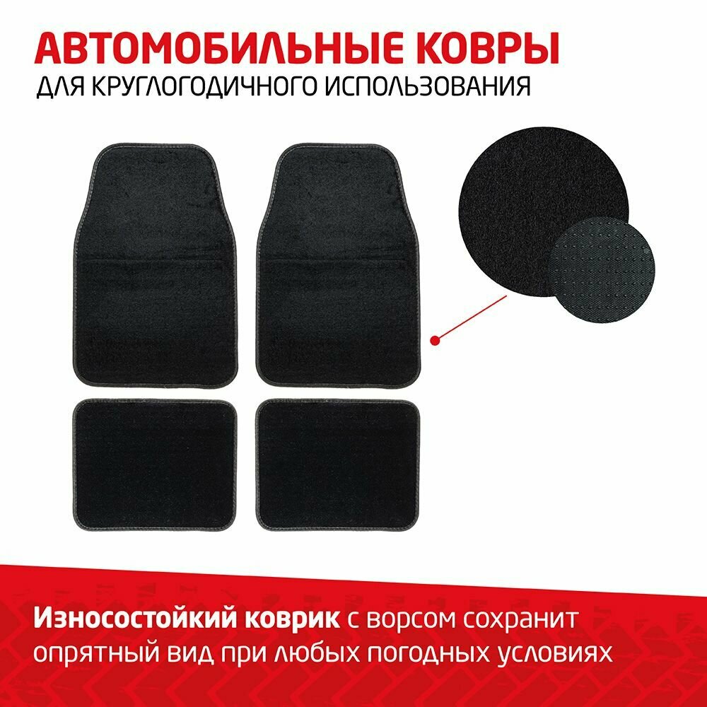 Коврики в салон автомобиля NEW GALAXY универсальные, 4 шт., ворс / Комплект автомобильных ковриков