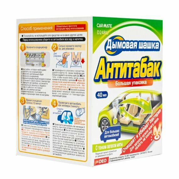 CIGARETTE DEODORANT STEAM Дымовая шашка для авто антитабак Carmate, 40мл