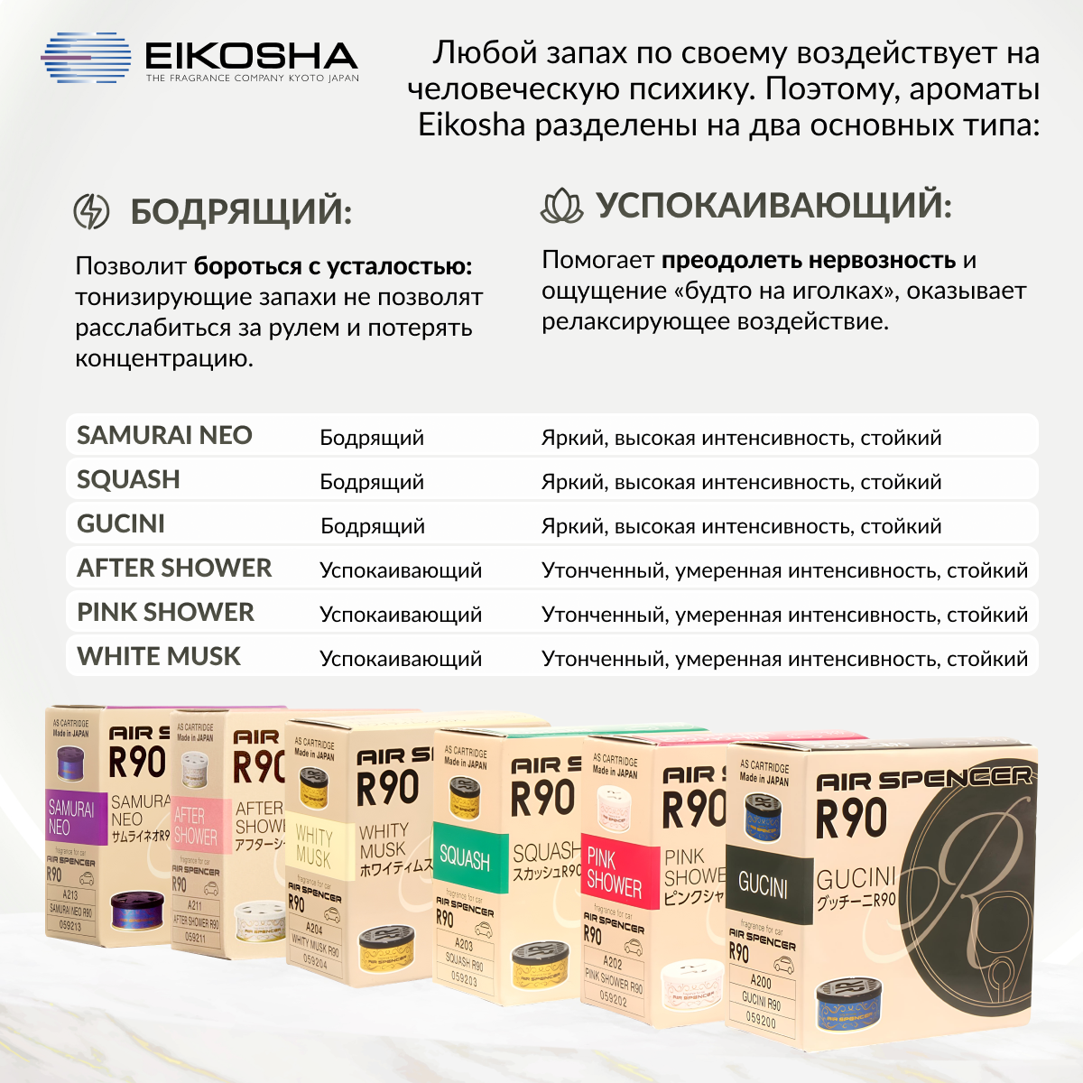 EIKOSHA ароматизатор для машины и дома меловой Spirit Refill R90 - GUCINI / гучини, автомобильный парфюм, арт. A-200