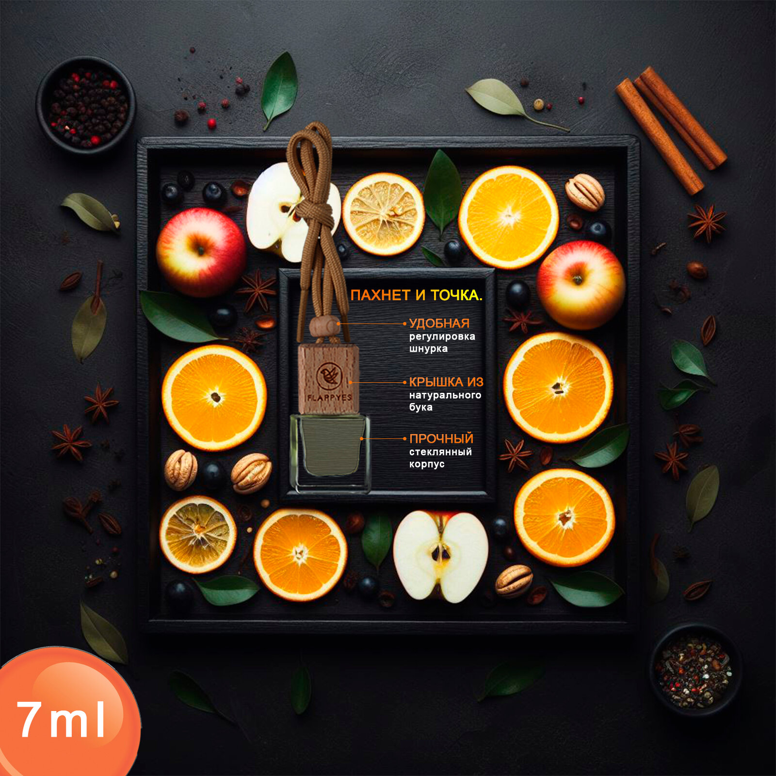 Ароматизатор для автомобиля и дома "Flappyes - Мандарин со специями" (Лёгкий аромат) / автопарфюм унисекс / освежитель воздуха / пахучка в машину