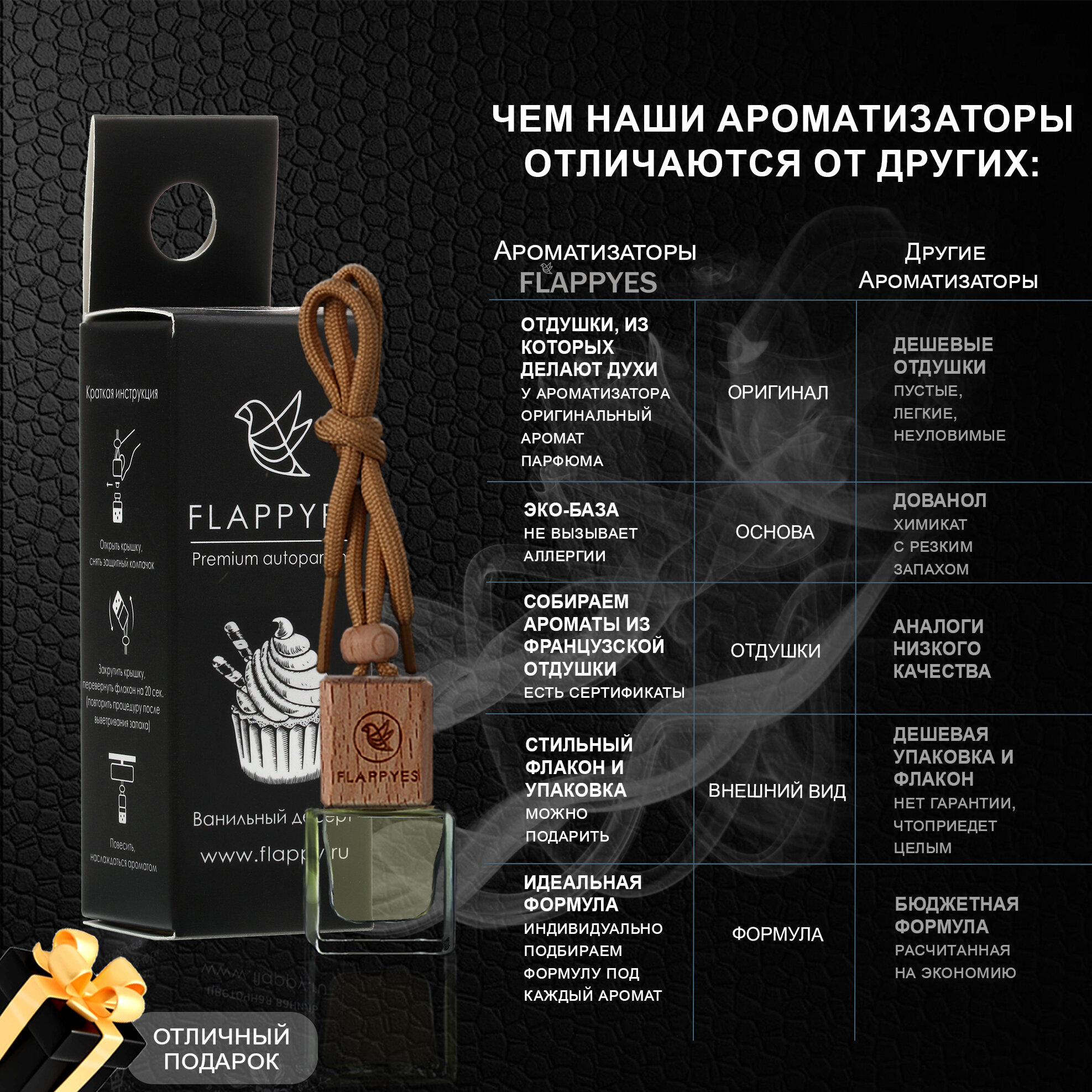 Купить Ароматизатор для автомобиля и дома "Flappyes - Ванильный десерт" / автопарфюм унисекс / освежитель воздуха / пахучка в машину
