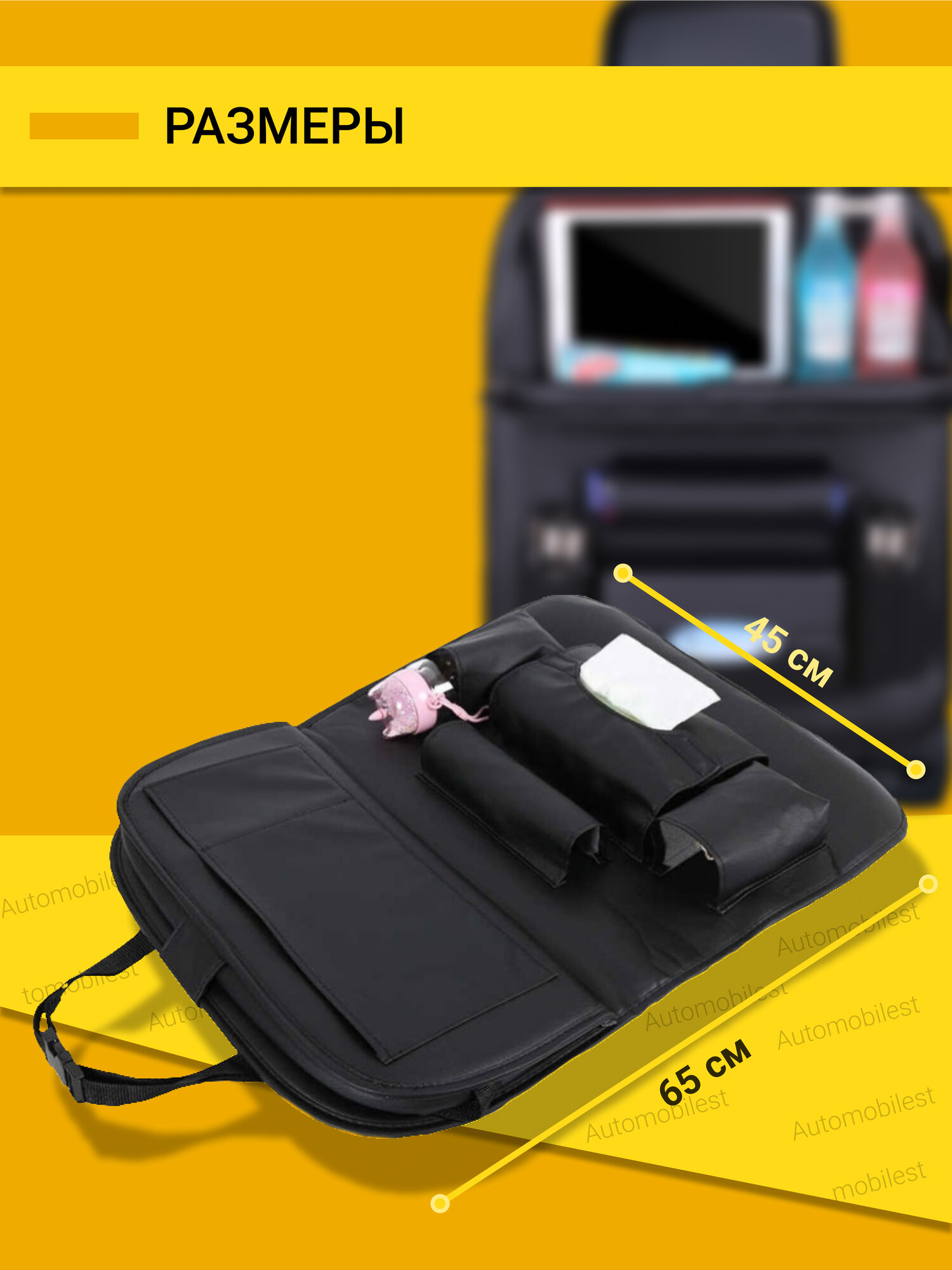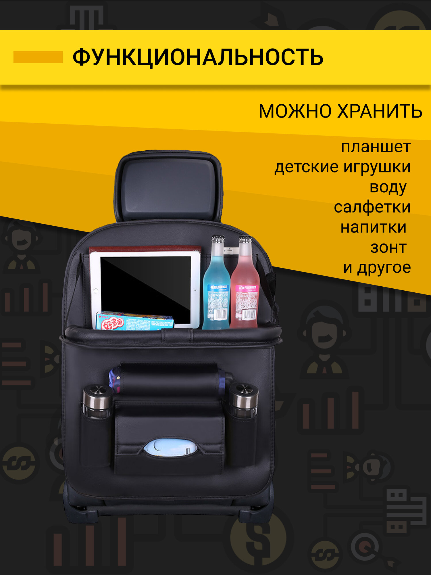 Органайзер черный на сиденье накидка со столиком в машину 65 x 45 интересное: