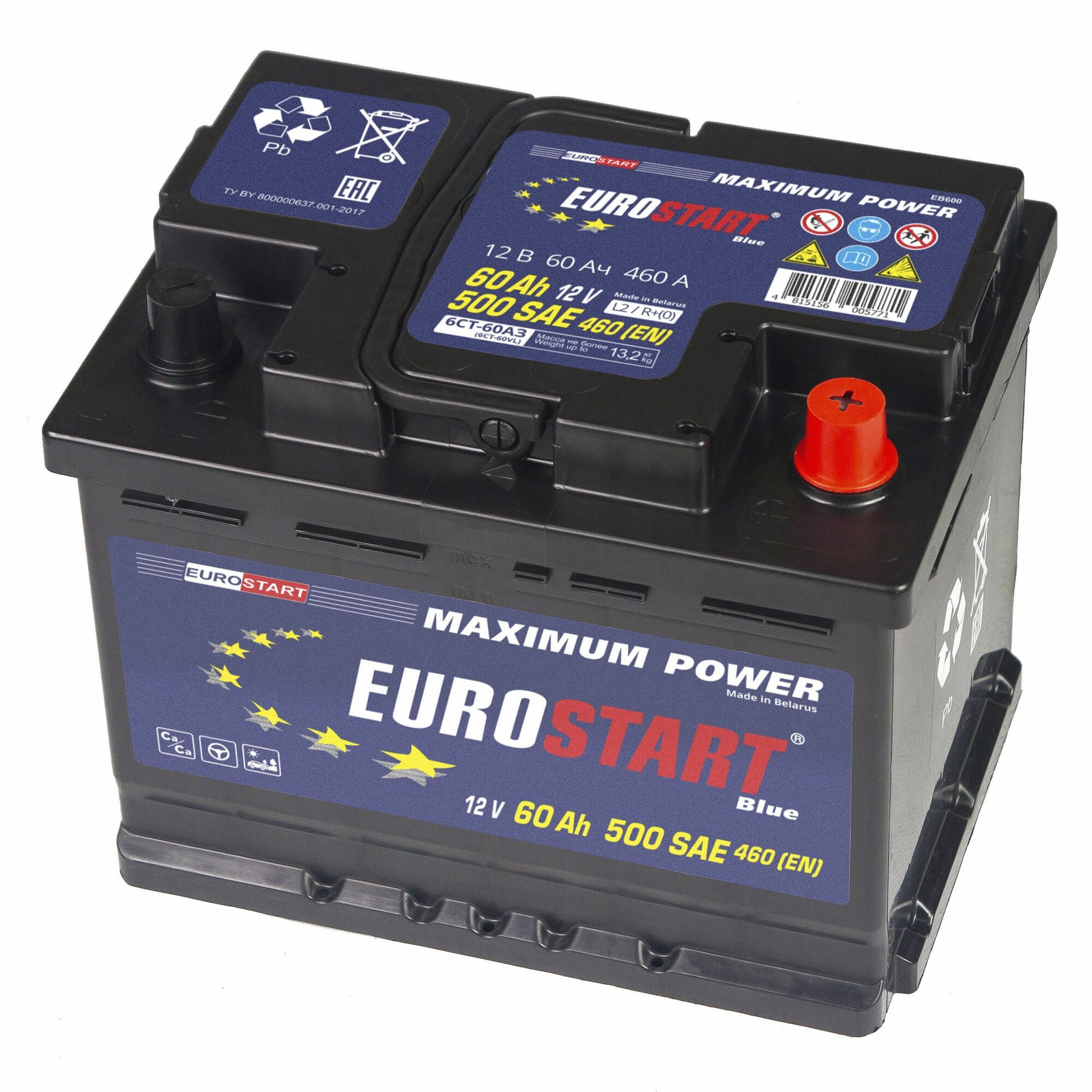 Аккумулятор автомобильный EUROSTART Blue 60Ач L+ EN480A 242x175x190 (EB600) B13 Прямой полярности