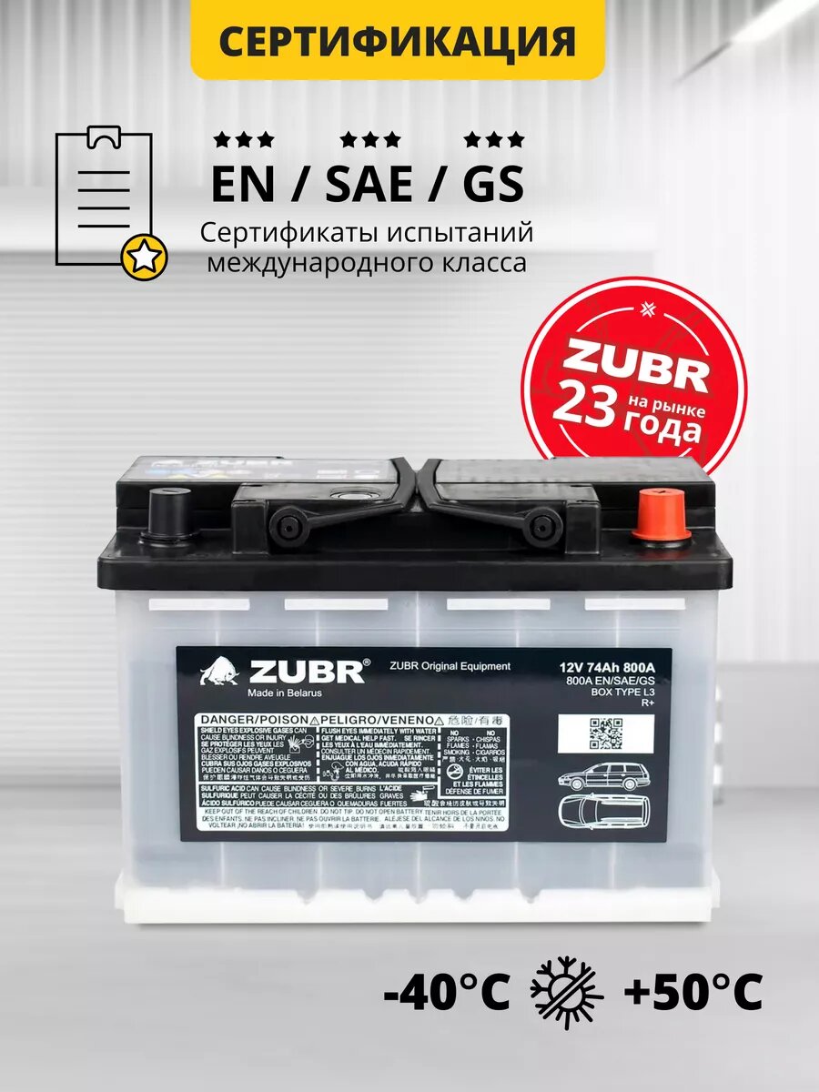 Аккумулятор автомобильный ZUBR Ultra PSL OE 74 Ah 800 A обратная полярность 278x175x190 интересное: