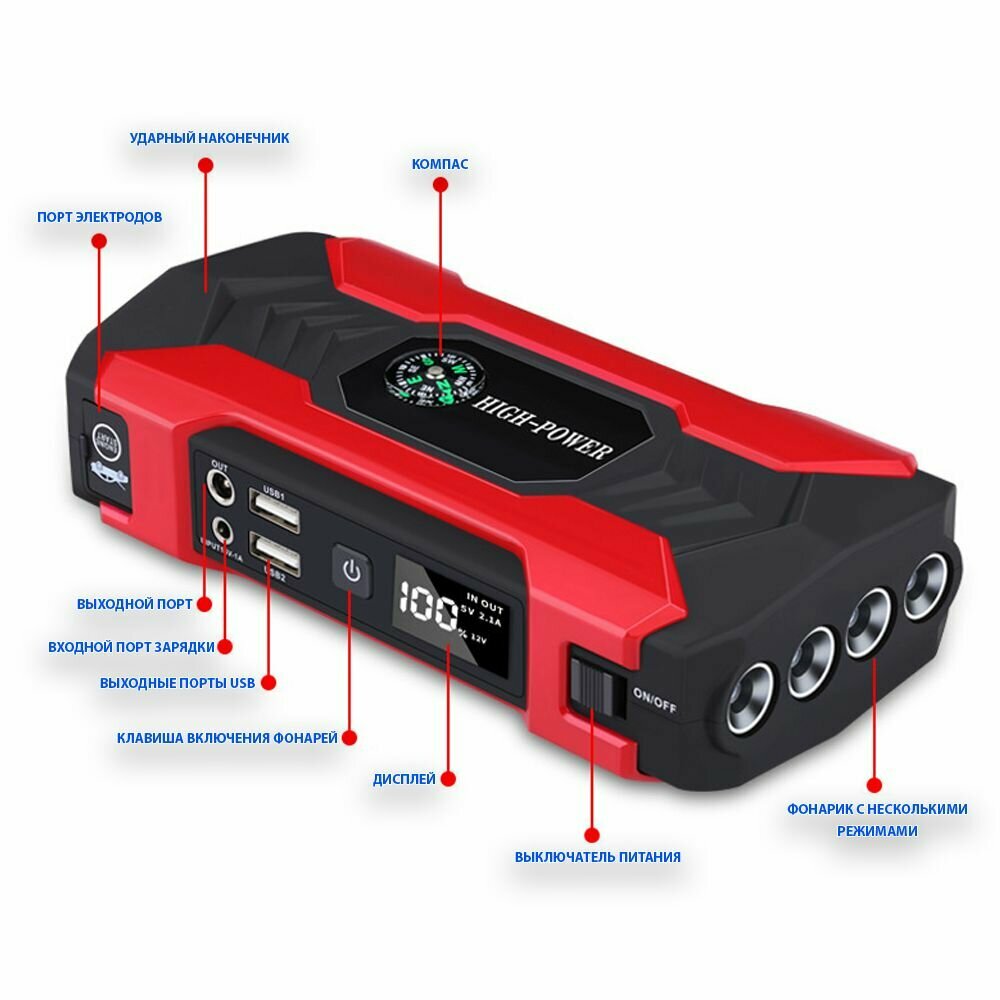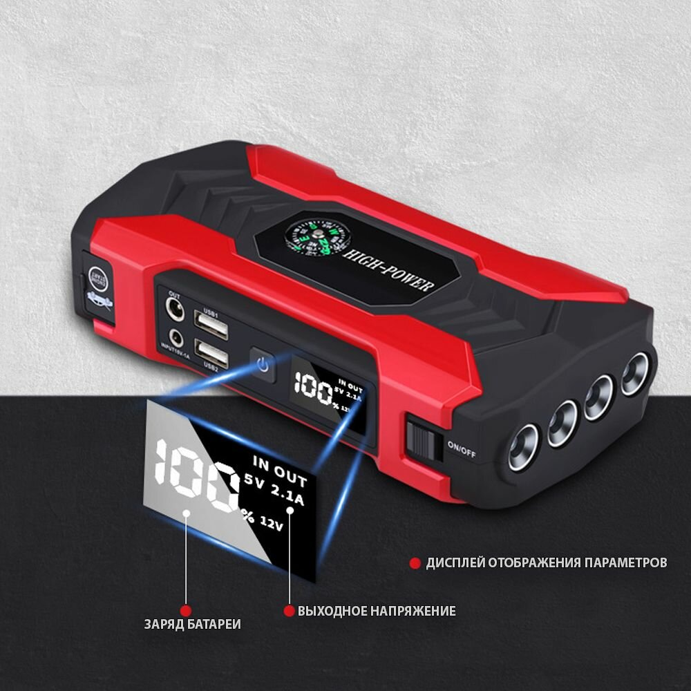 Портативное пусковое зарядное устройство 28000 mAh, 800А интересное: