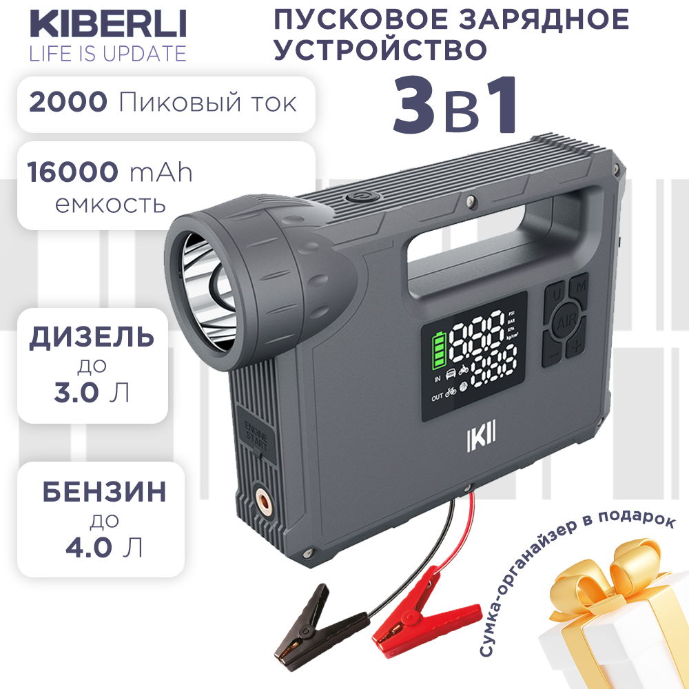 Пуско-зарядное устройство для автомобиля KIBERLI SF 1, компрессор, фонарь интересное: