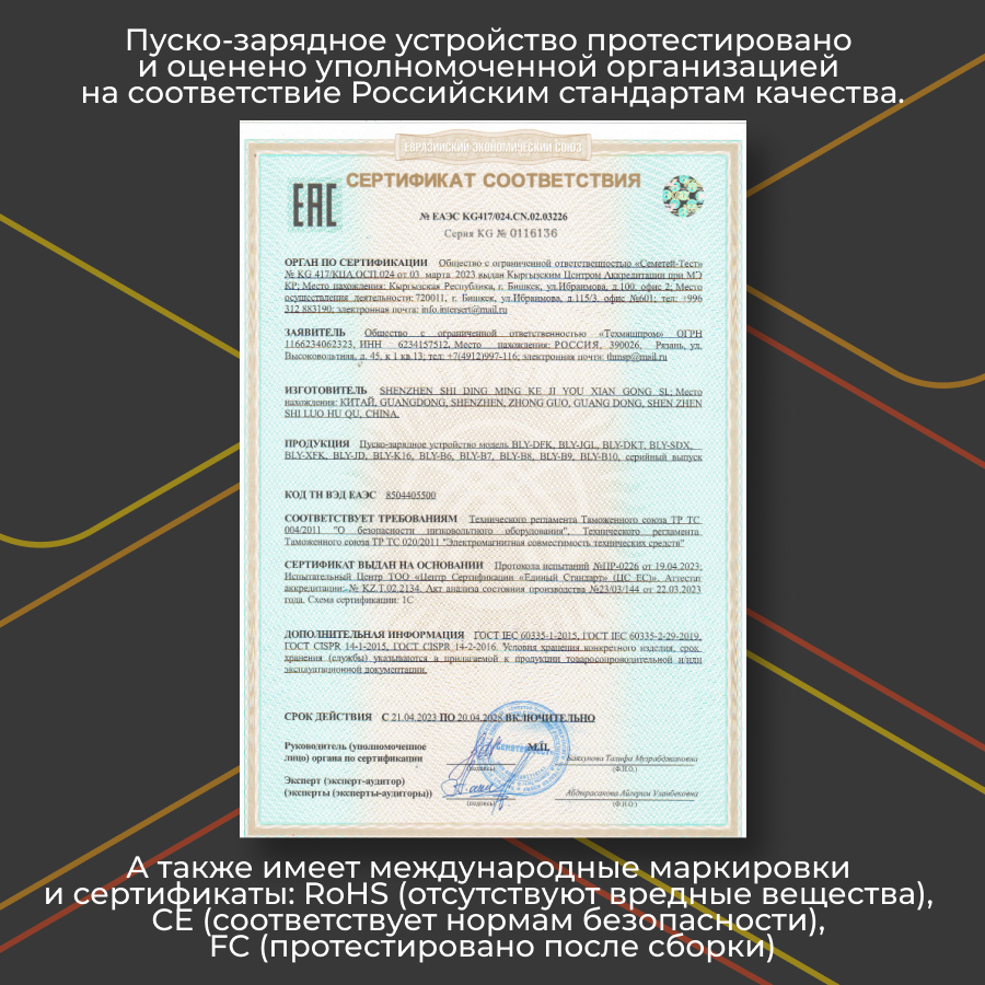 | Комплектация | Пусковое устройство, кабель Type-C, зажимы - крокодилы для автомобильного аккумулятора, инструкция по применению, гарантийный талон |