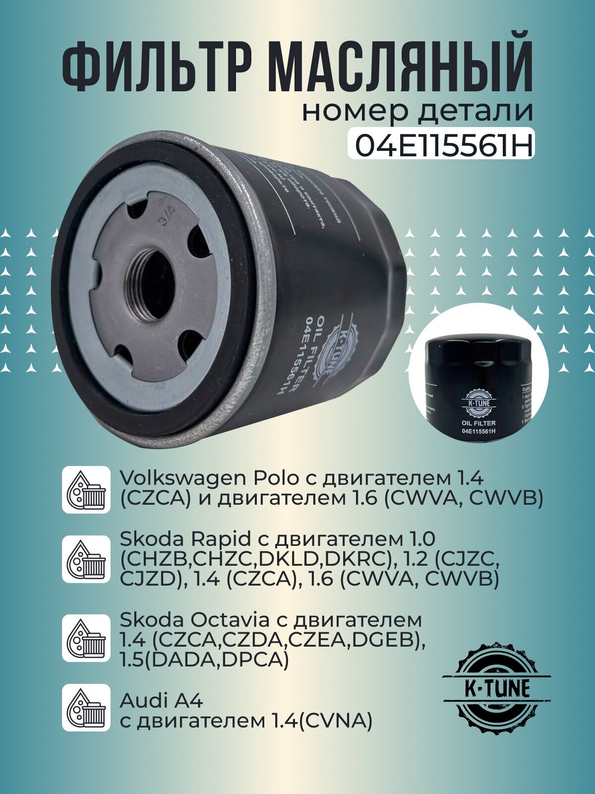 Фильтр масляный K-Tune для VAG 04E115561H. Фольксваген Поло Шкода Рапид 2015-2020 г интересное: