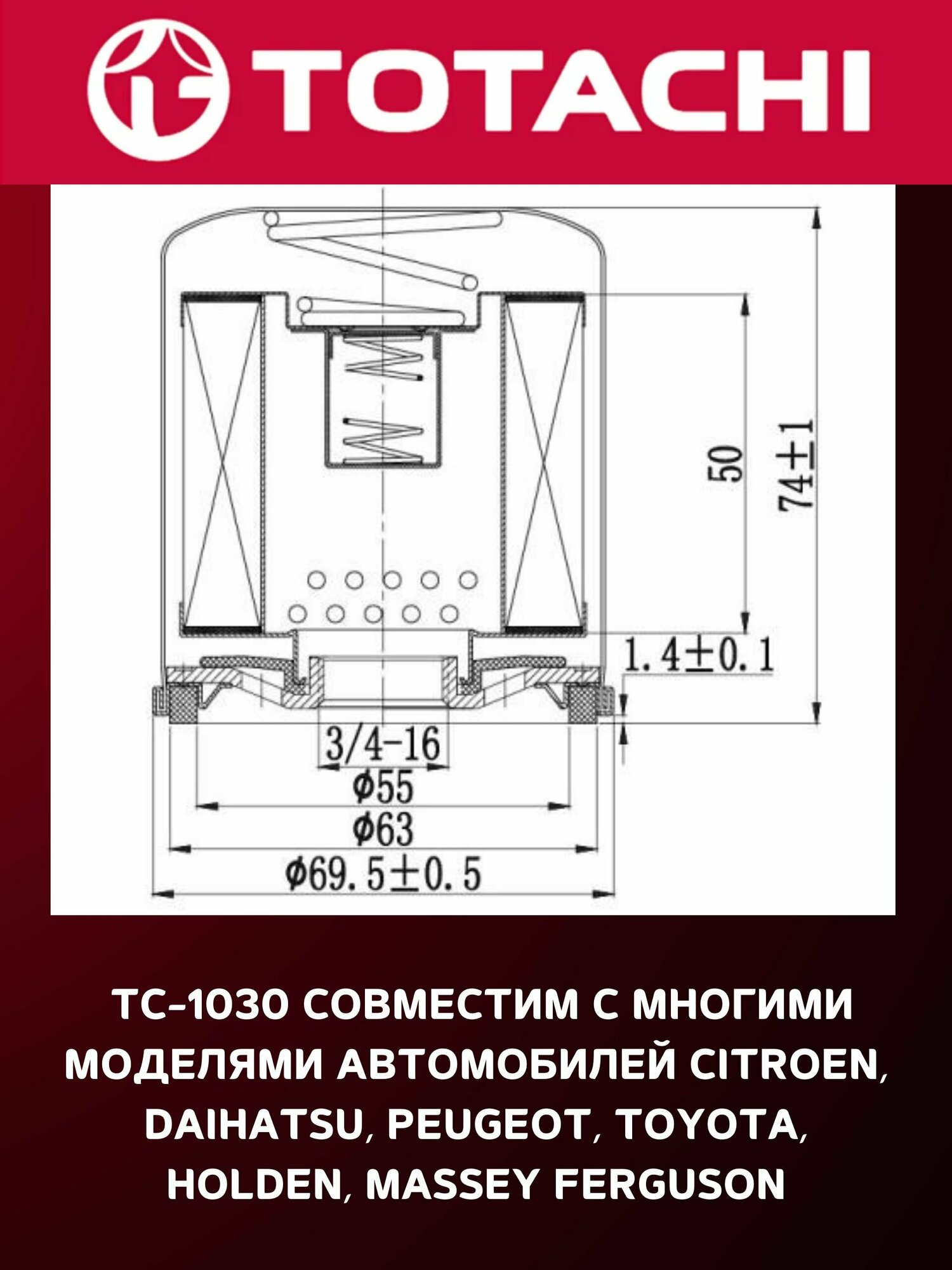Фильтр масляный двигателя Totachi TC1030 интересное: