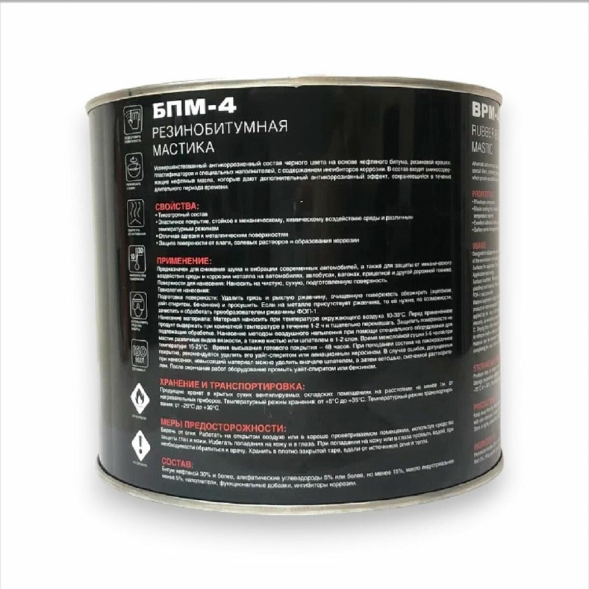 Резинобитумная мастика MASTERWAX БПМ-4 , 2.3 кг, антикоррозийная защита автомобиля, в жестяной банке