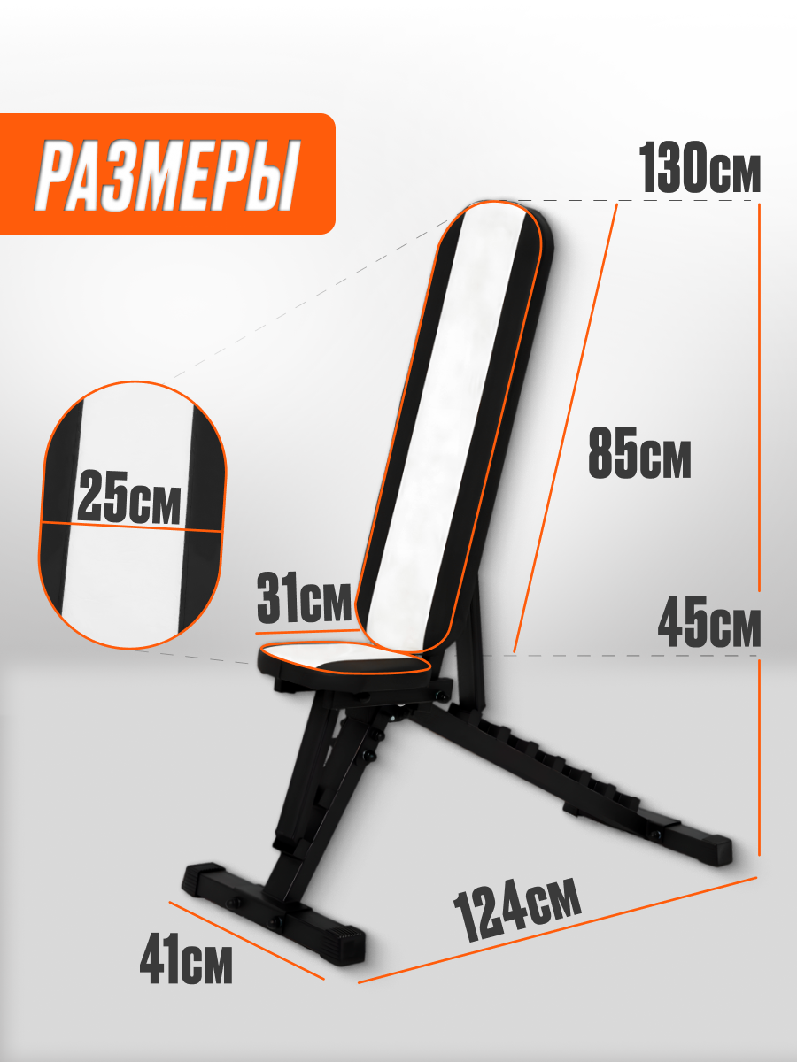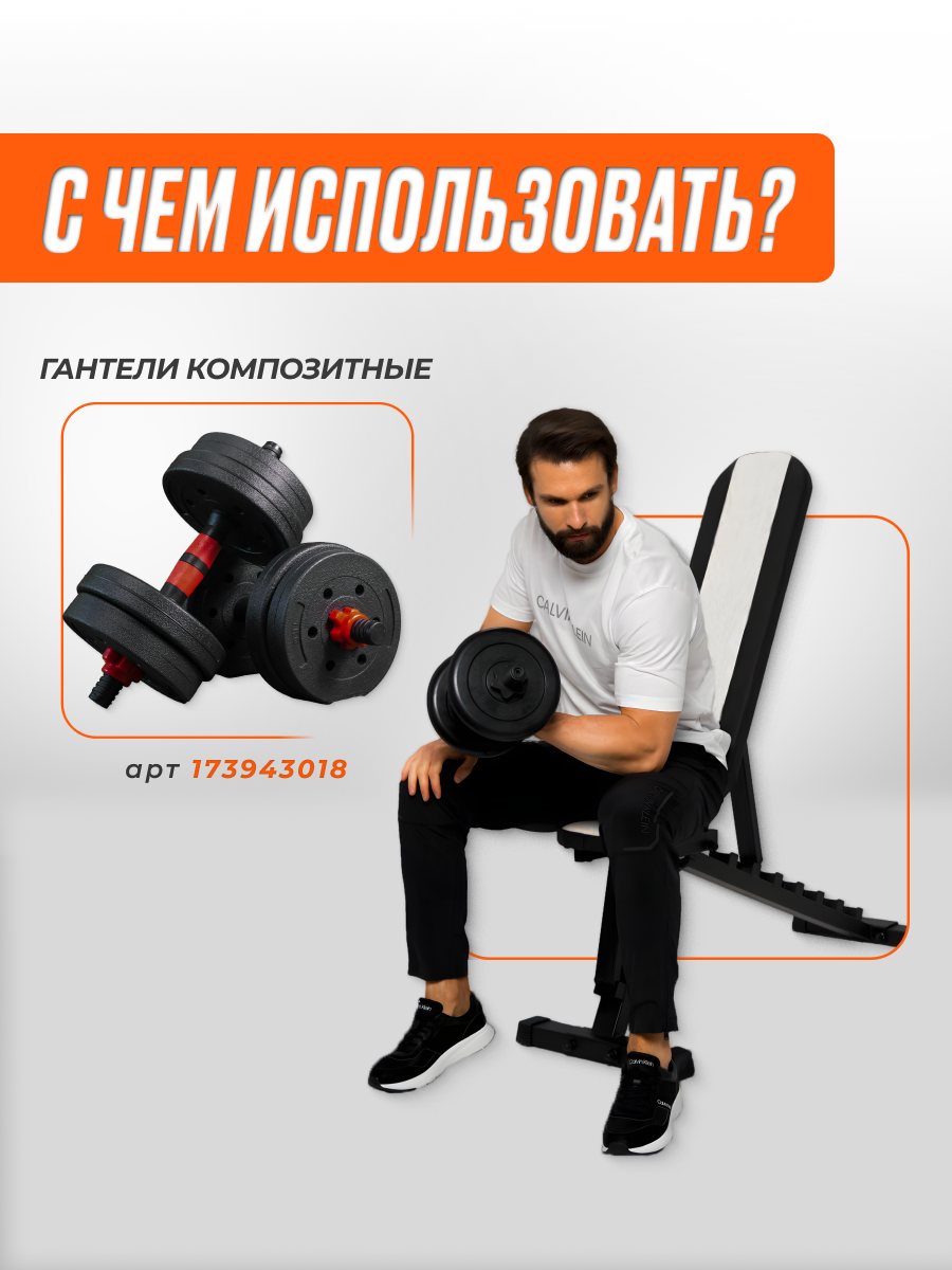 | Минусы: | Немного узковата, если вы больше средних габаритов, может быть неудобно. Есть положение для жима под отрицательным углом, но неудобно, соскальзываешь. Легкая - может скользить, лучше к стене ставить. |