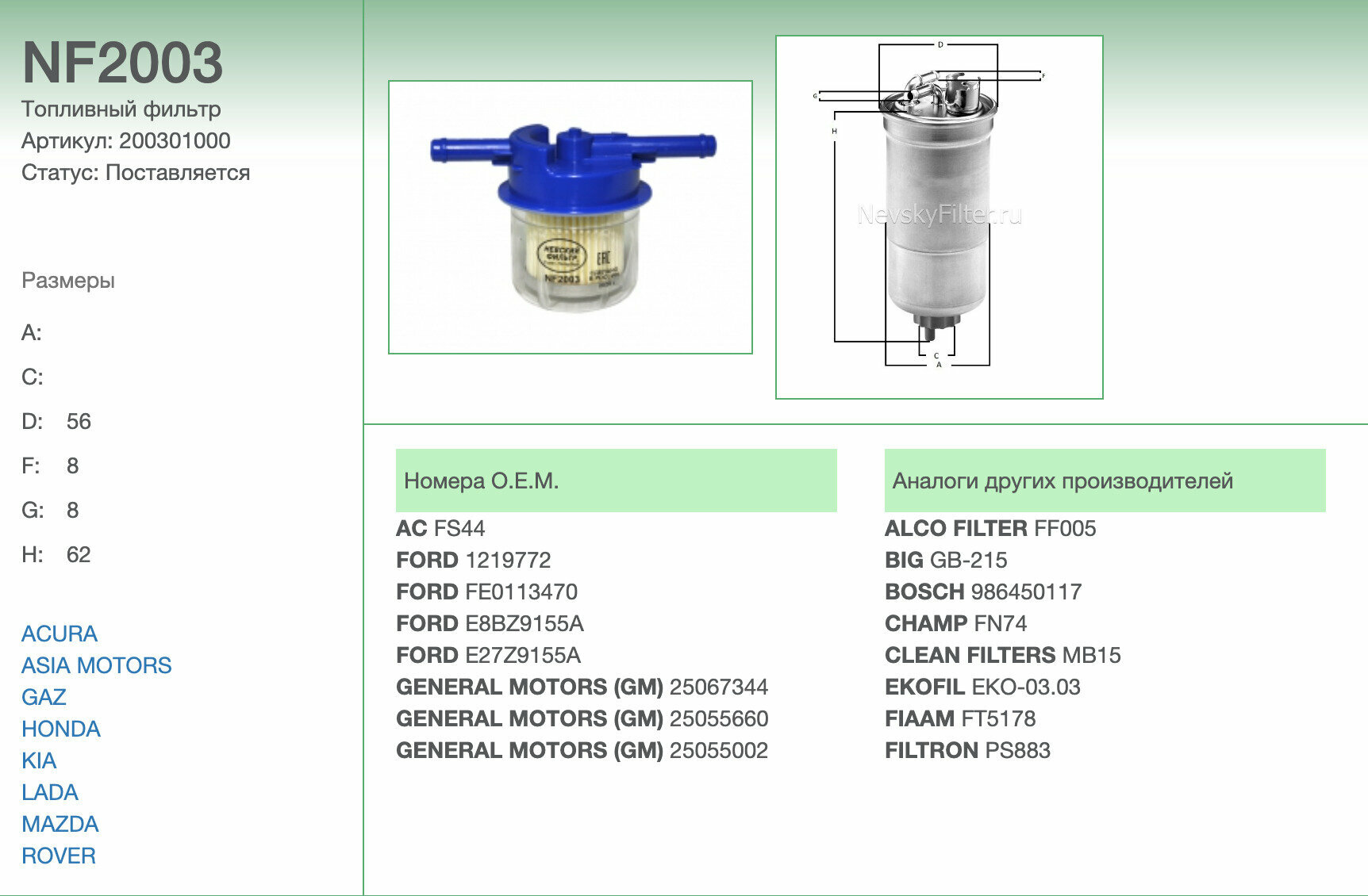 | Бренд | NEVSKY FILTER |