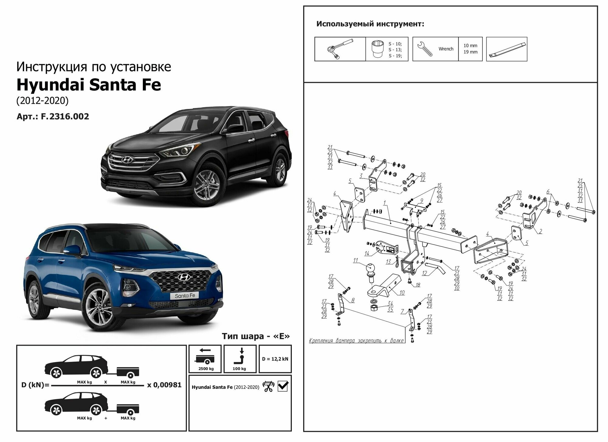Фаркоп Hyundai Santa Fe 12-20 (Шар Е, 2500/100 Кг) BERG арт. F.2316.002
